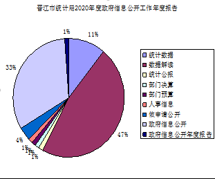 3、公开信息的内容。一是统计数据发布。定期在“中国晋江”政府门户网站、“晋江统计”官方微信等互联网平台定期发布晋江每月经济运行情况、统计公报、统计年鉴、统计常识等月度、年度数据,实事求是公布进展情况;二是统计分析报告。围绕市政府工作报告,把涉及有关统计调查的指标,以统计图表、统计分析等多种形式,加强统计数据分析解读,及时预警监测、科学研判、有效回应;三是统计工作动态。及时更新第七次全国人口普查、全国经济普查、人口抽样调查、住户调查等国情国力调查最新工作动态,提高社会公众知晓率。四是发布其他信息。包括发布人事信息、年度预决算信息等。