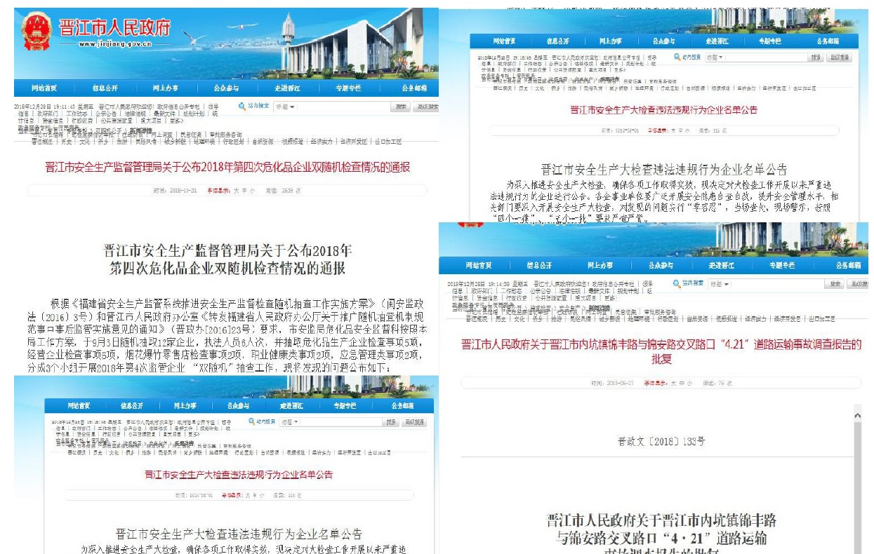 我局发布安全生产信息主要有晋江市政府门户网站、晋江安监微信平台等多种途径,同时通过电视台、晋江经济报等媒体方式,发布安全生产相关信息。