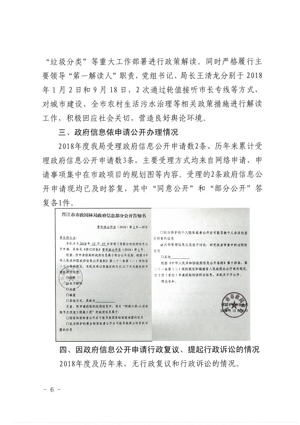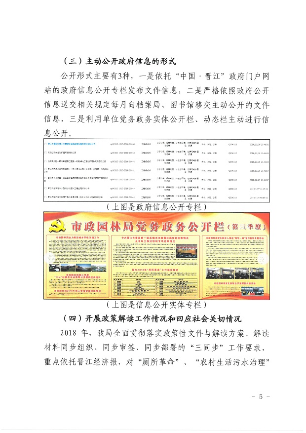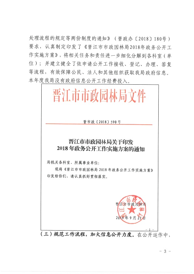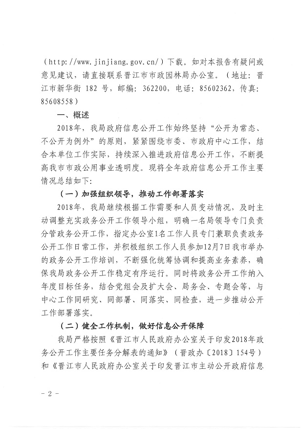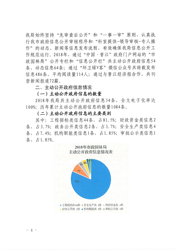 晋江市市政园林局2018年政府信息公开工作年度报告
