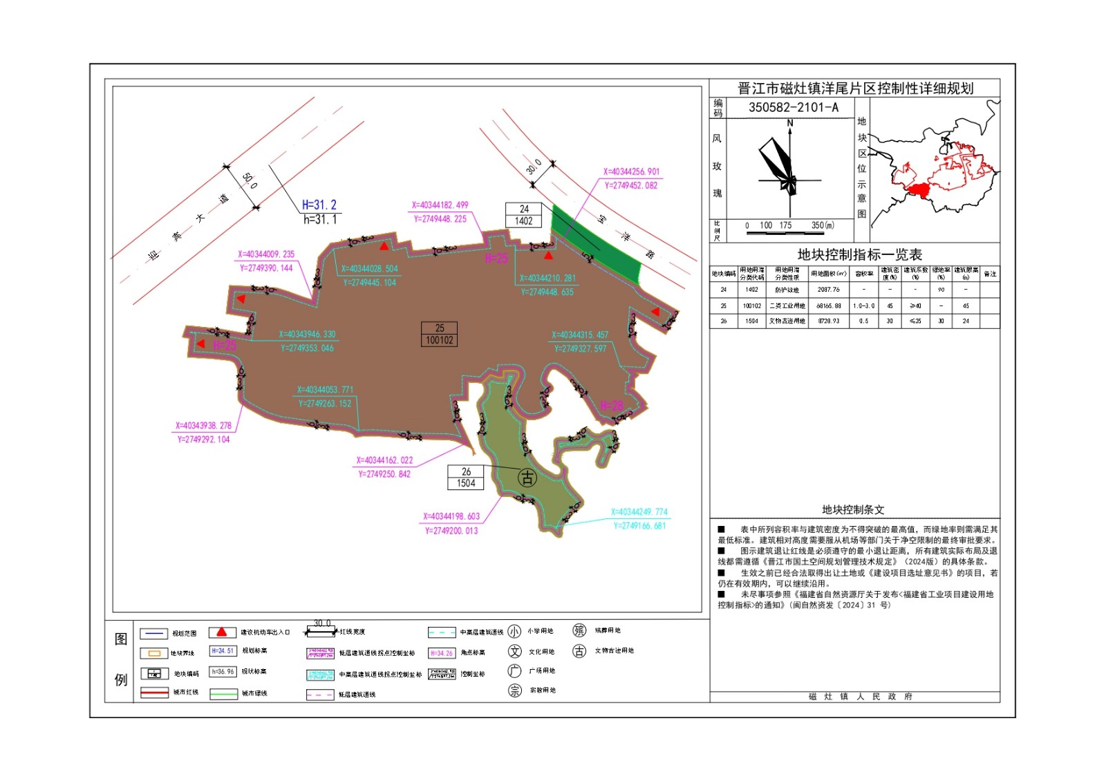 因城镇发展建设需要、国土空间管理和使用需要,晋江市磁灶镇人民政府组织编制了《晋江市磁灶镇洋尾片区控制性详细规划》。规划成果于2025年11月4日由我局组织部门和专家评审并审查通过;经修改完善,拟提报晋江市人民政府批准。现根据《中华人民共和国城乡规划法》、受组织编制单位委托,将规划草案予以批前公告、征求公众意见。具体如下: