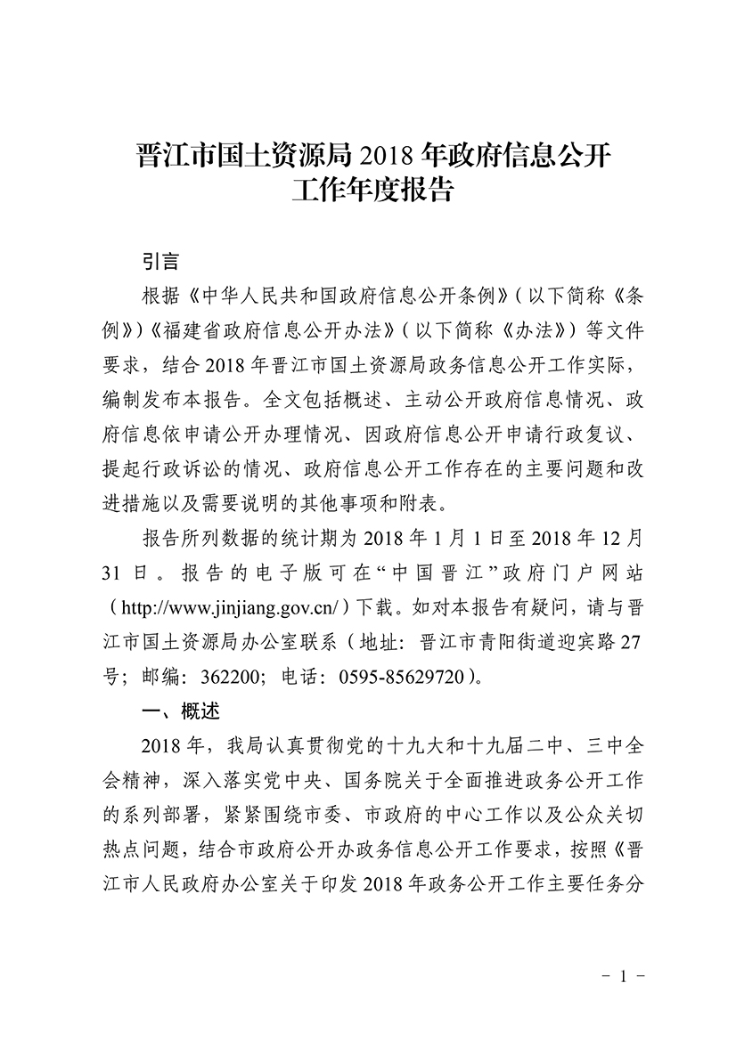 晋江市国土资源局2018年政府信息公开工作年度报告.pdf