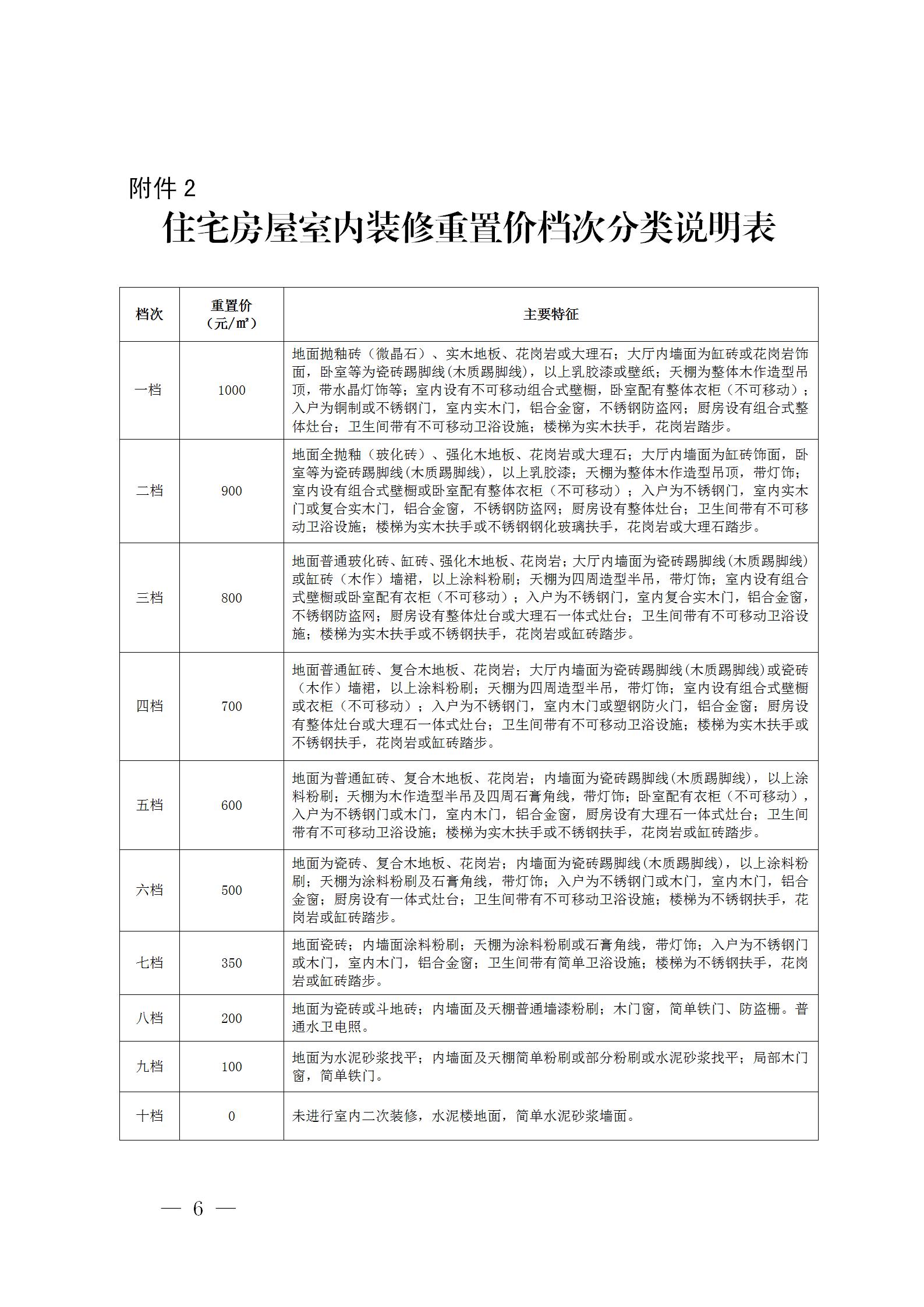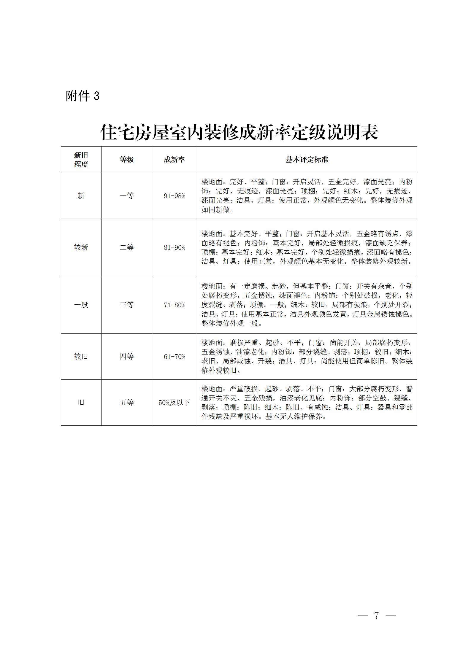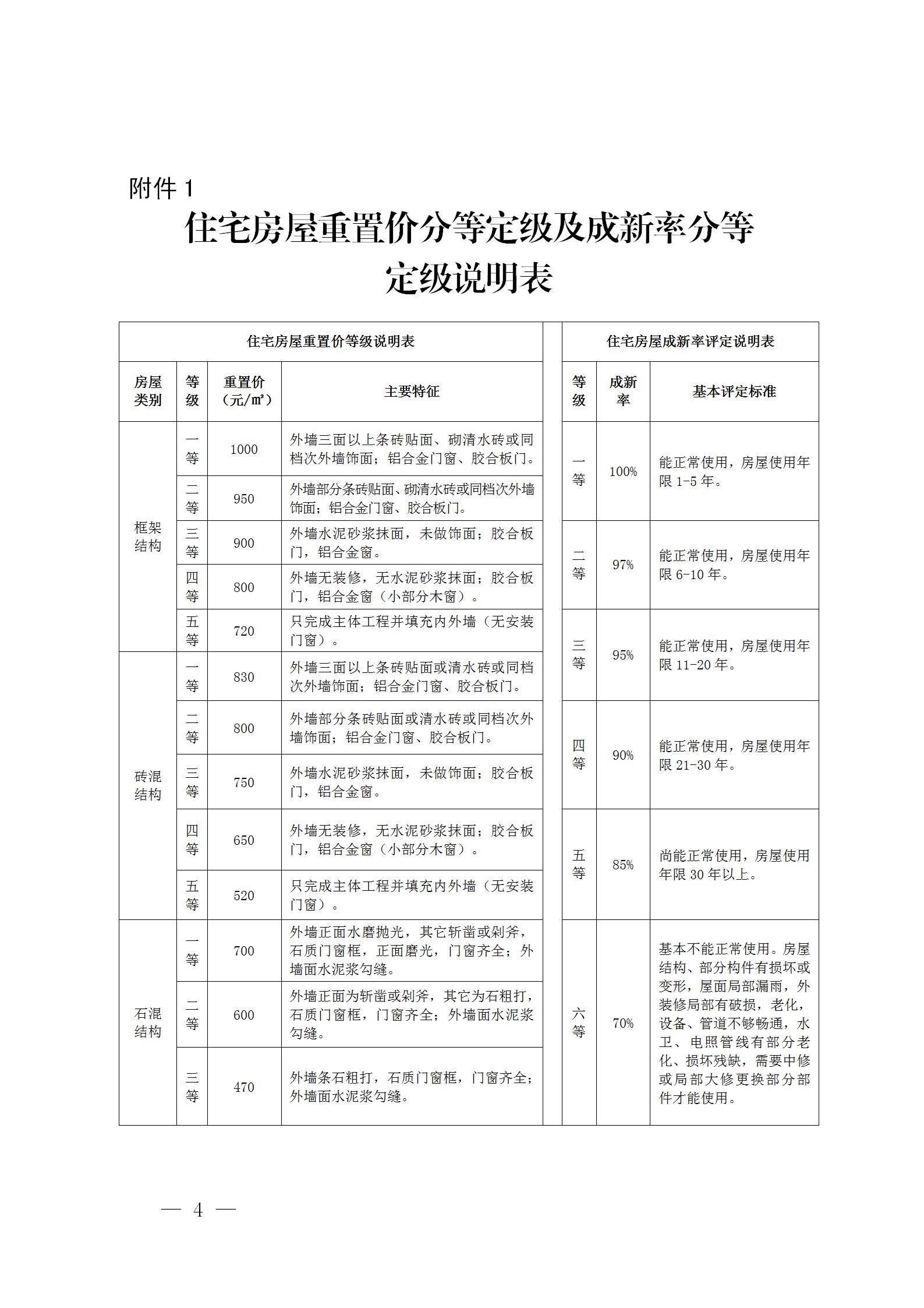附件:1.住宅房屋重置价分等定级及成新率分等定级说明表