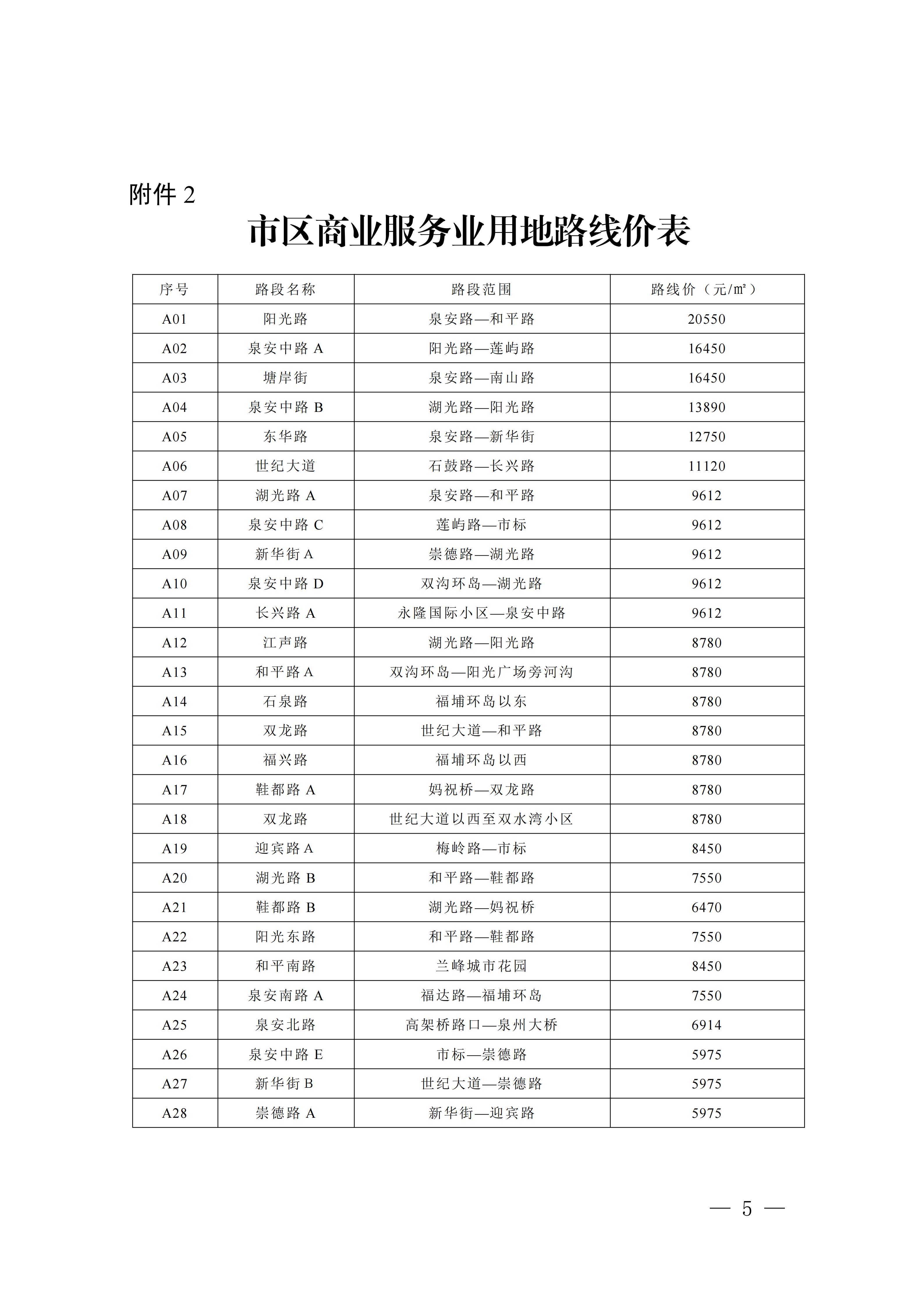 3.市区可分割销售商业服务业用地级别价表(标准容积率2.5)