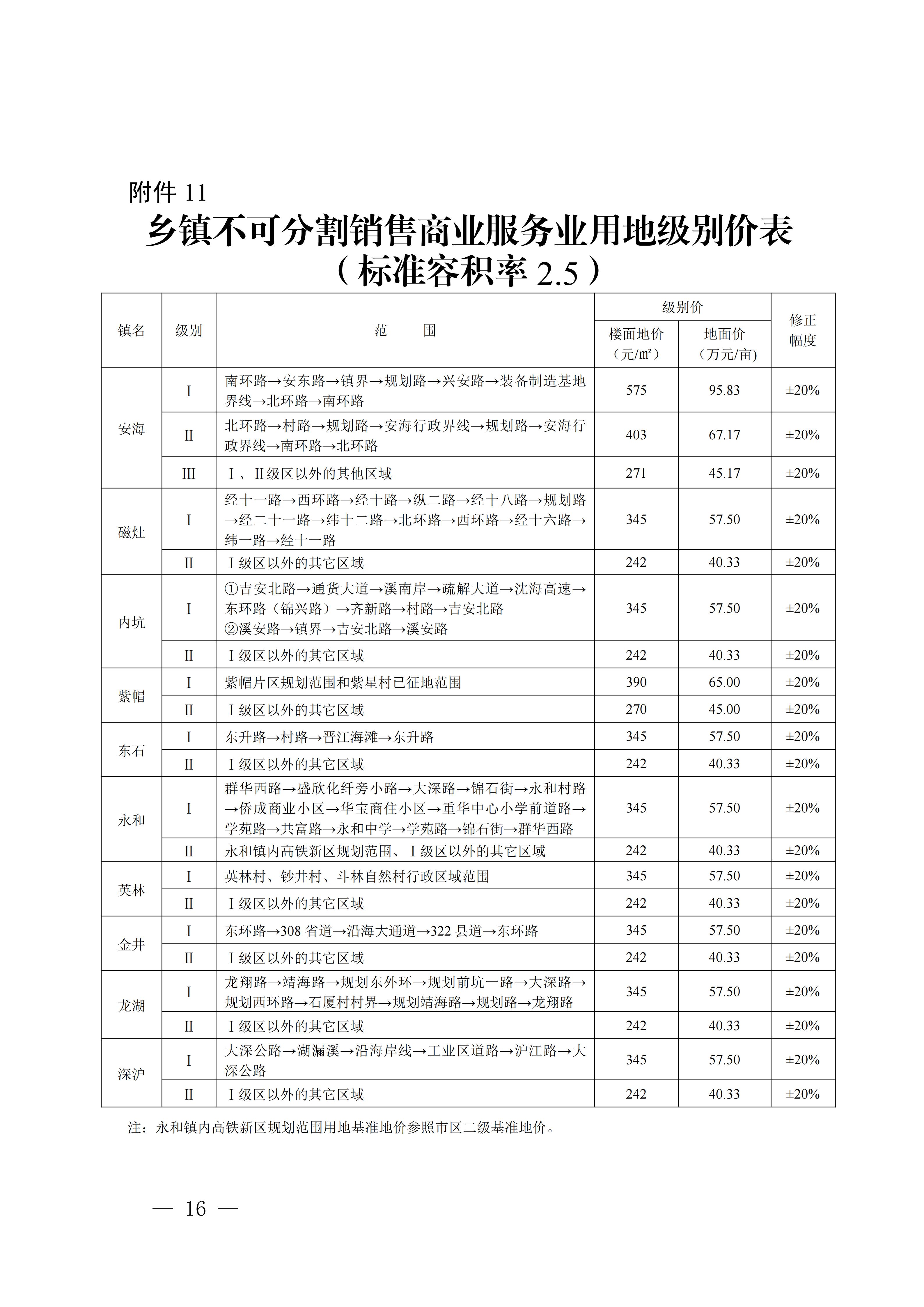 11.乡镇不可分割销售商业服务业用地级别价表(标准容积率2.5)