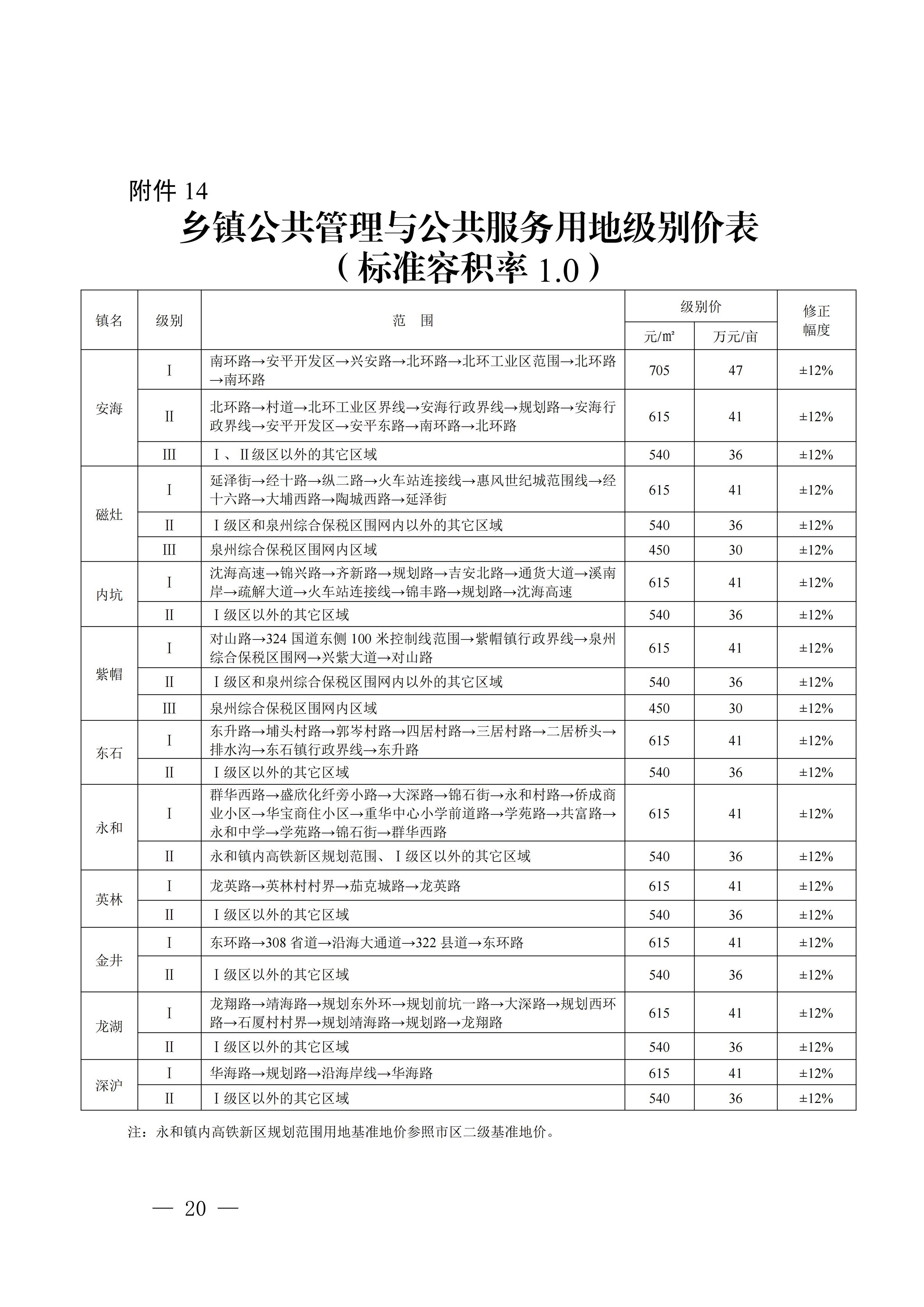 14.乡镇公共管理与公共服务用地级别价表(标准容积率1.0)