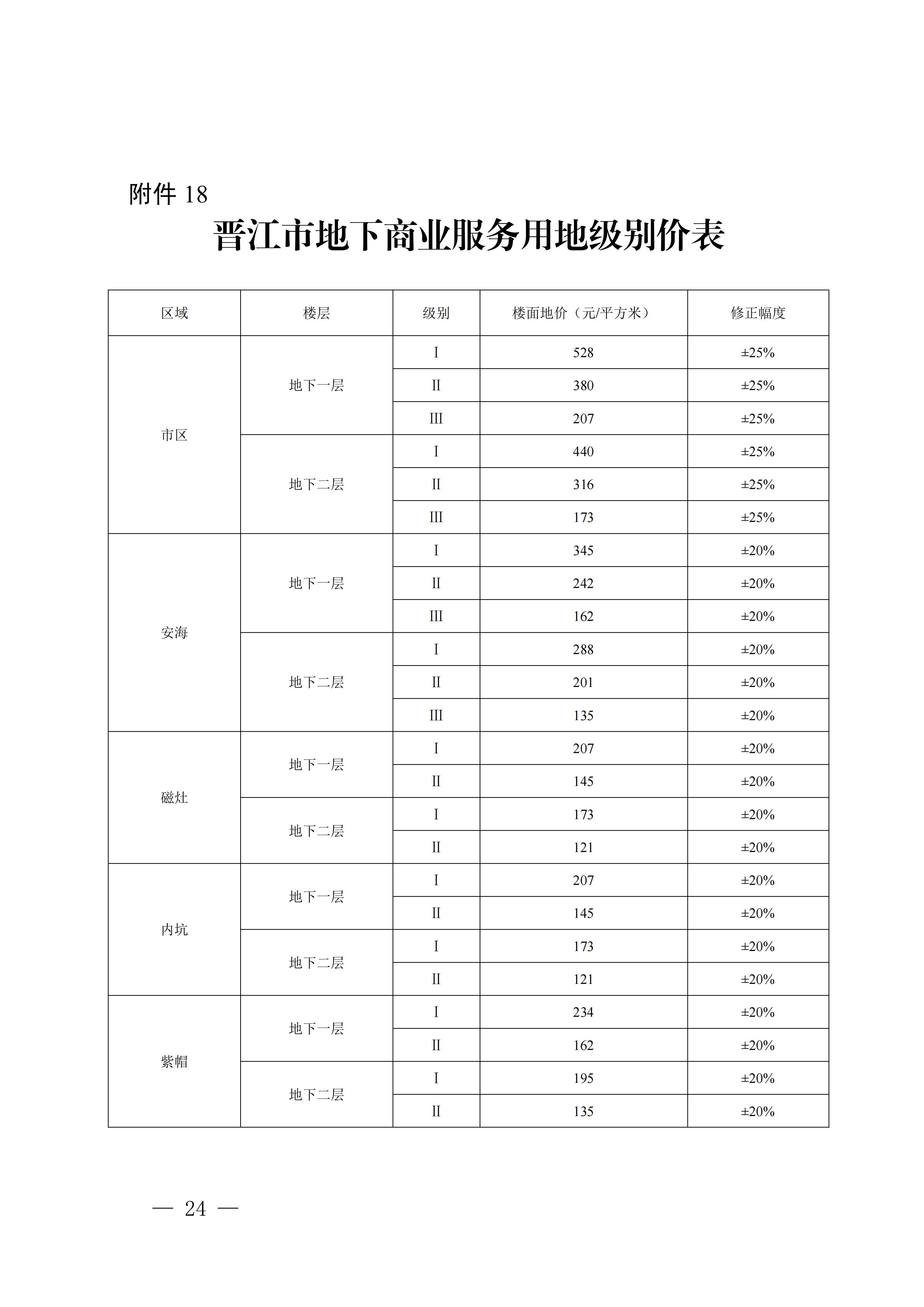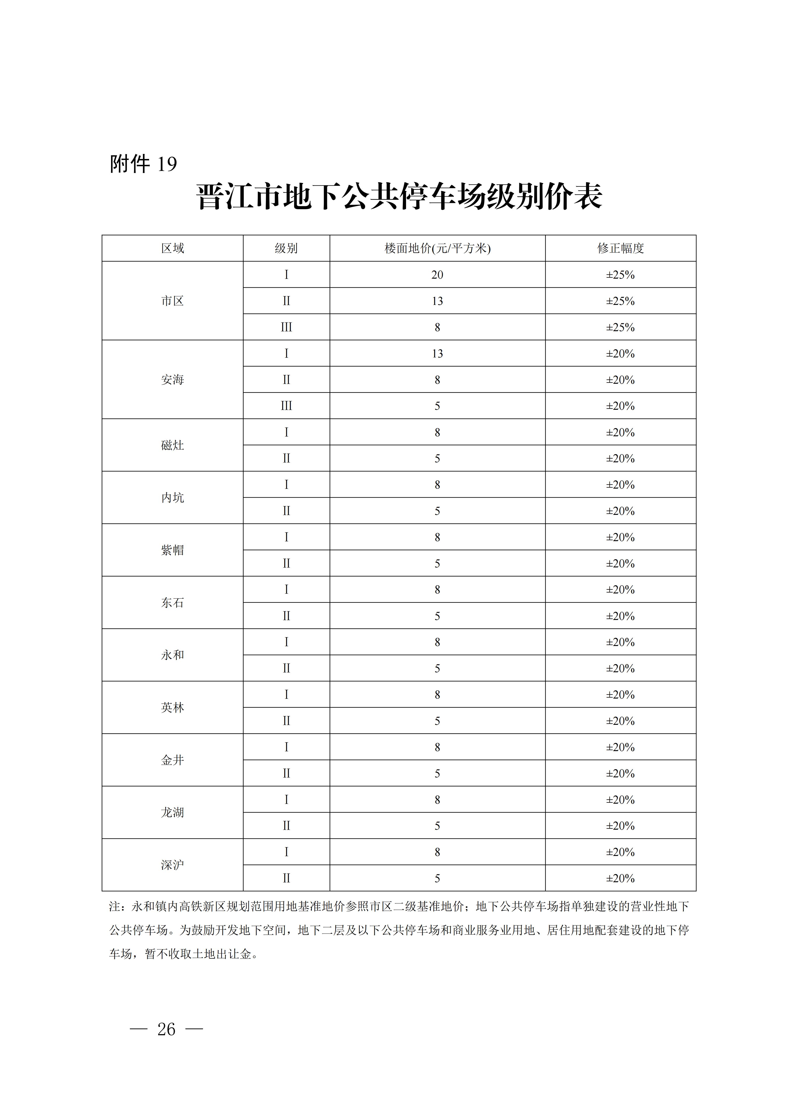 一、本基准地价适用于晋江市行政辖区内的所有土地,作为晋江市范围内的土地使用权交易的价格参考,同时作为自然资源管理部门在土地一级市场中确定土地出让金标准的依据。
