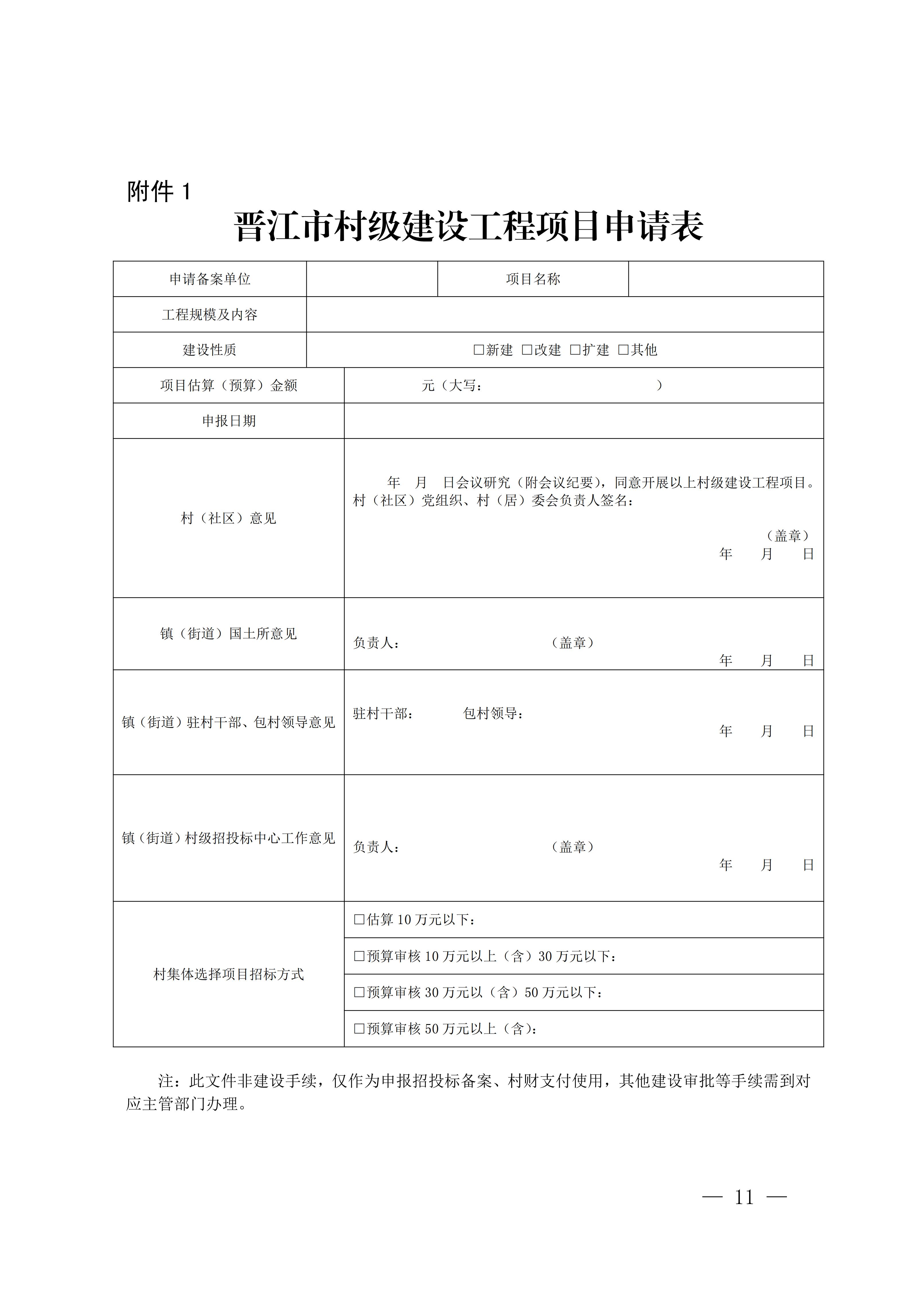 附件:1.晋江市村级建设工程项目申请表