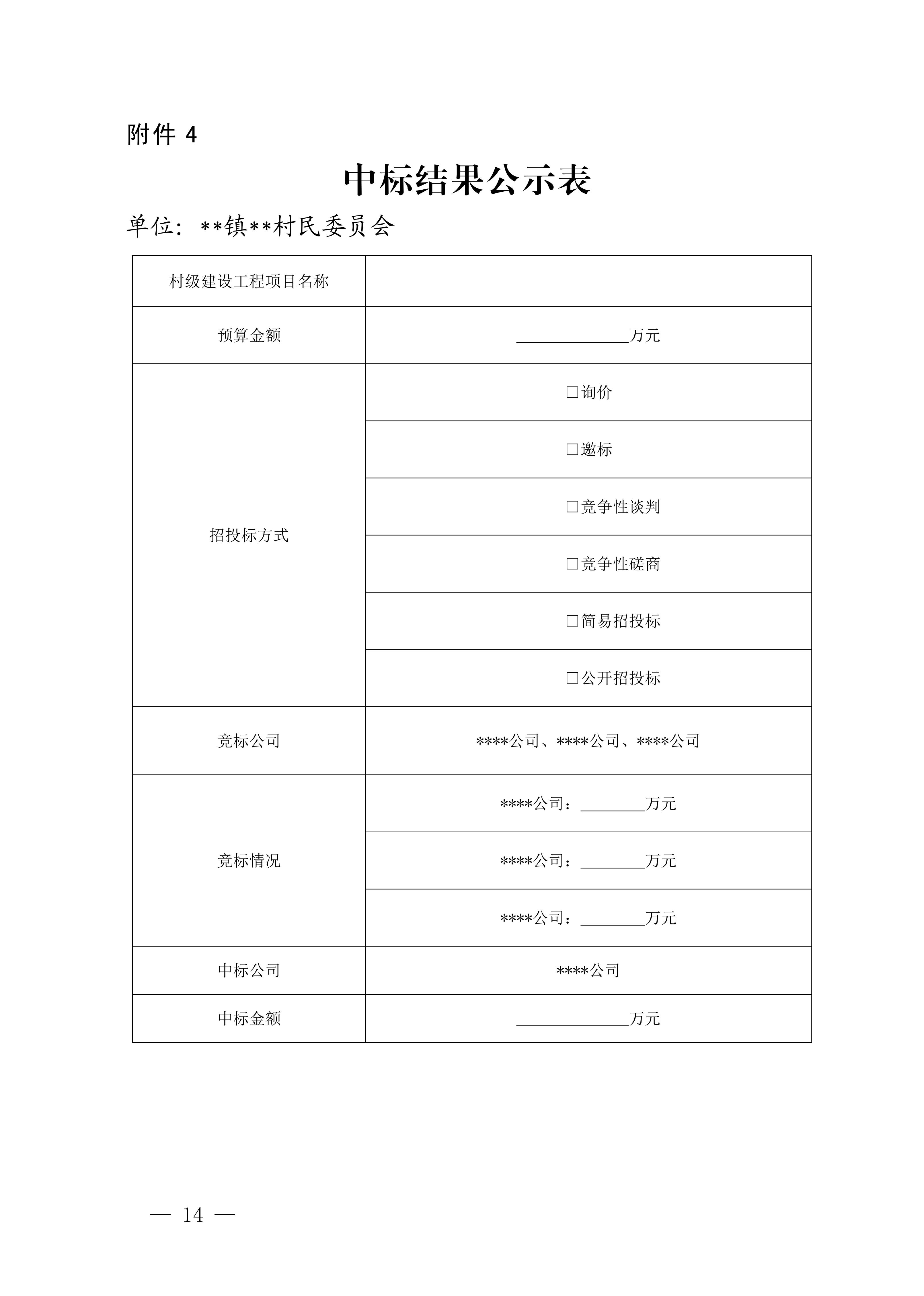 4.中标结果公示表