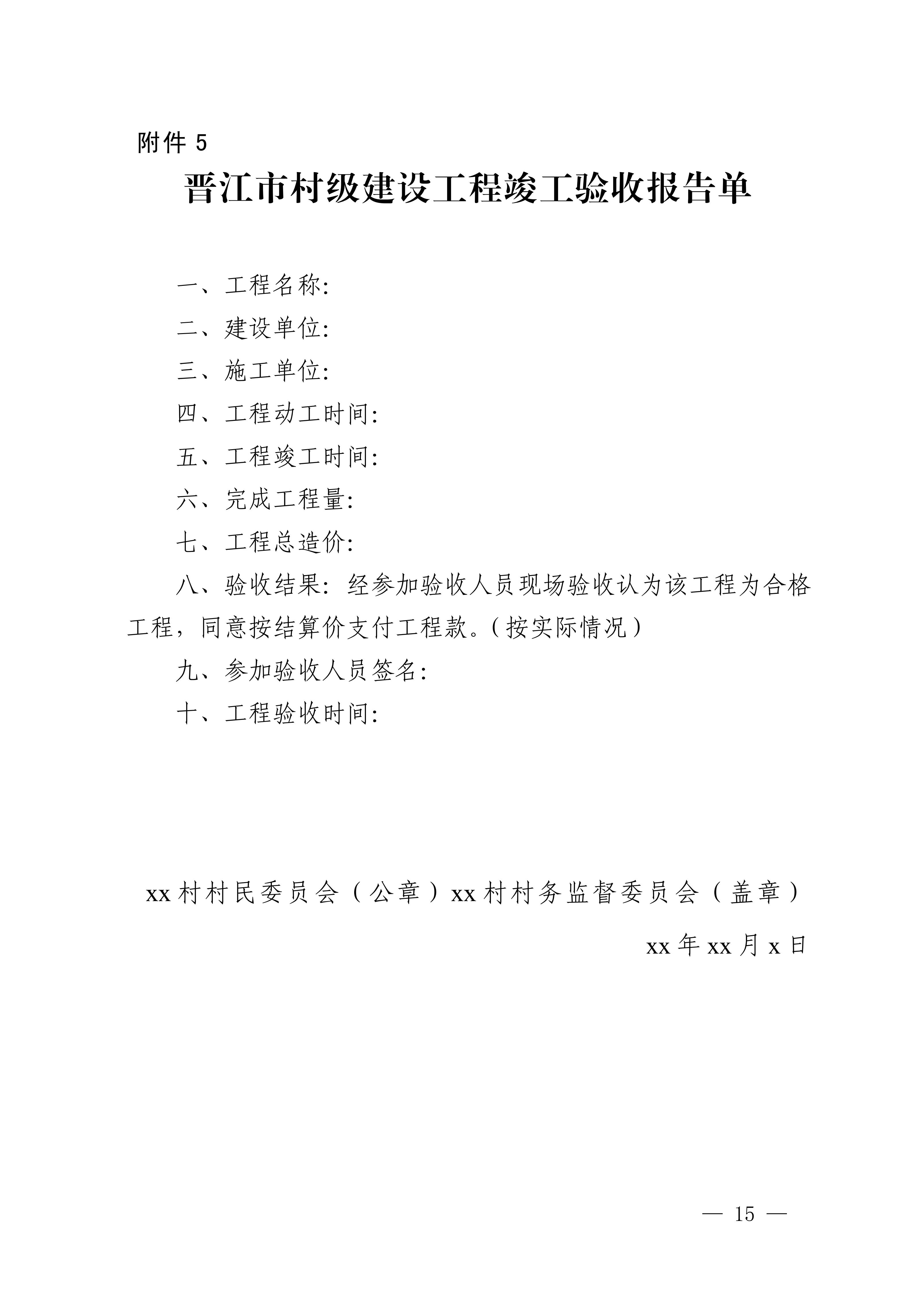 5.晋江市村级建设工程竣工验收报告单