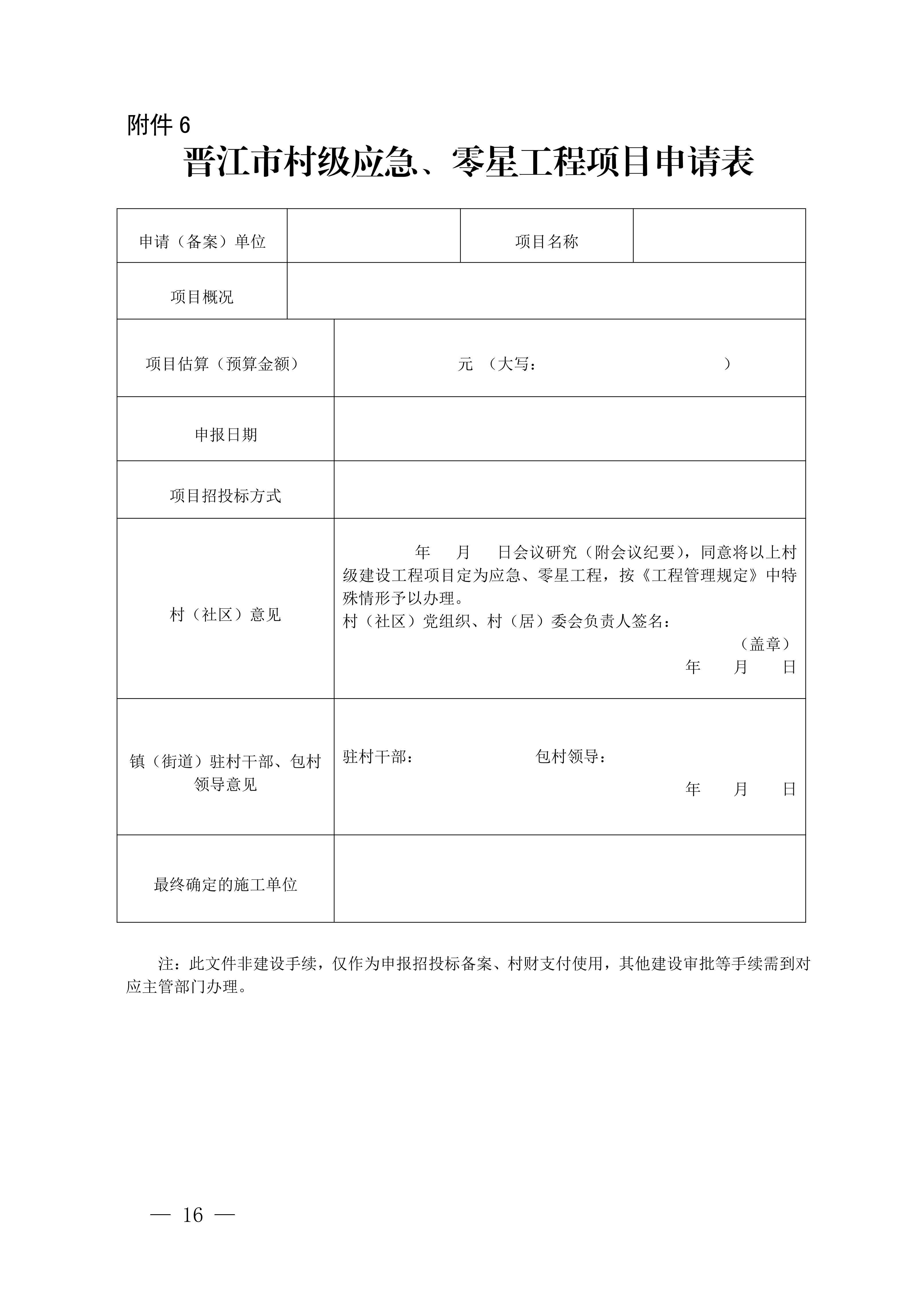 6.晋江市村级应急、零星工程项目申请表