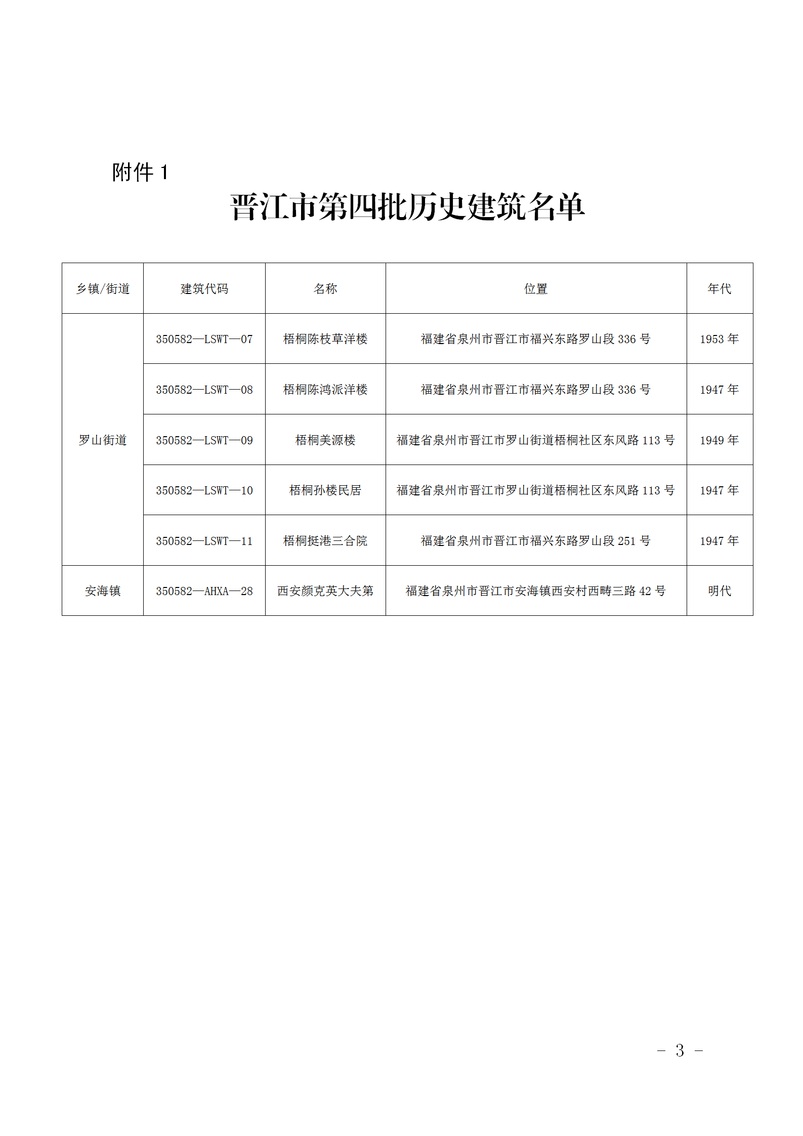 为贯彻落实《福建省历史文化名城名镇名村和传统村落保护条例》《福建省传统风貌建筑保护条例》精神,加强我市历史建筑及传统风貌建筑保护管理,更好地传承历史文化,保留历史记忆,根据历史建筑及传统风貌建筑认定公布程序,经市政府研究,确定梧桐陈枝草洋楼等6栋建筑为我市第四批历史建筑,梧桐枝所楼等12栋建筑为我市第一批传统风貌建筑,现予以公布。