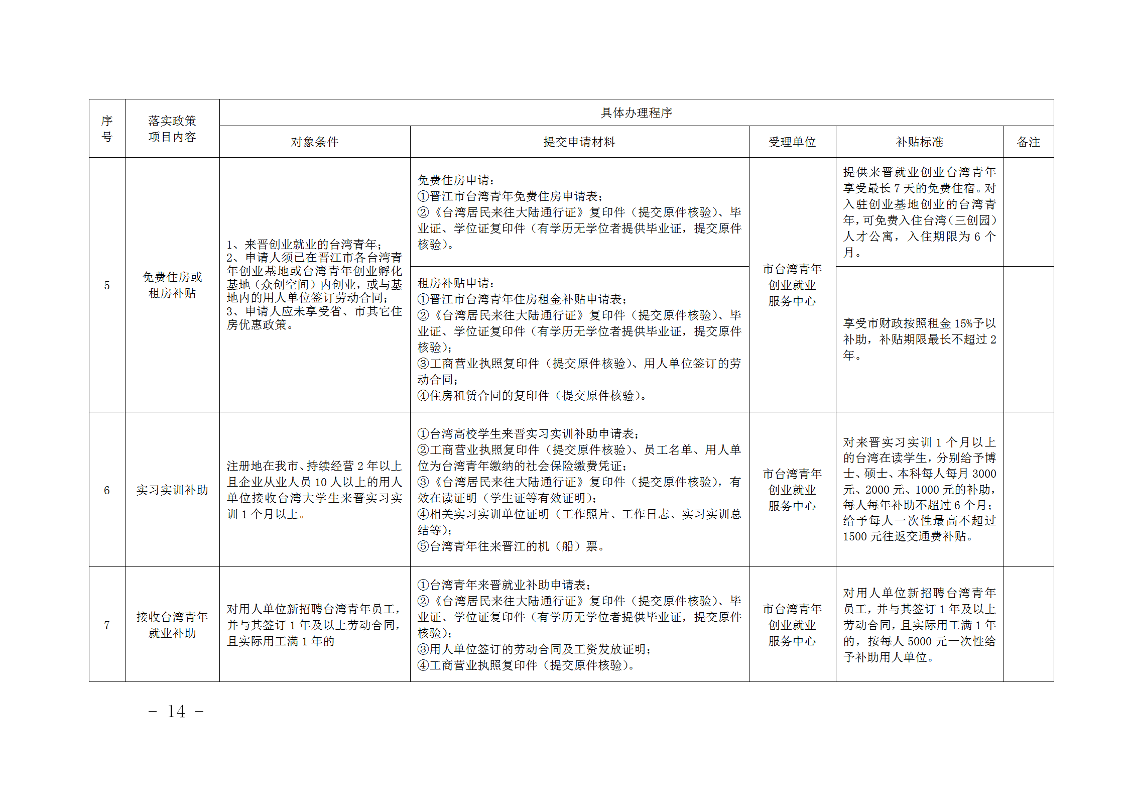 责任单位:市委台港澳办、团市委,市财政局、人社局,泉州半导体高新区管委会晋江分园区办事处