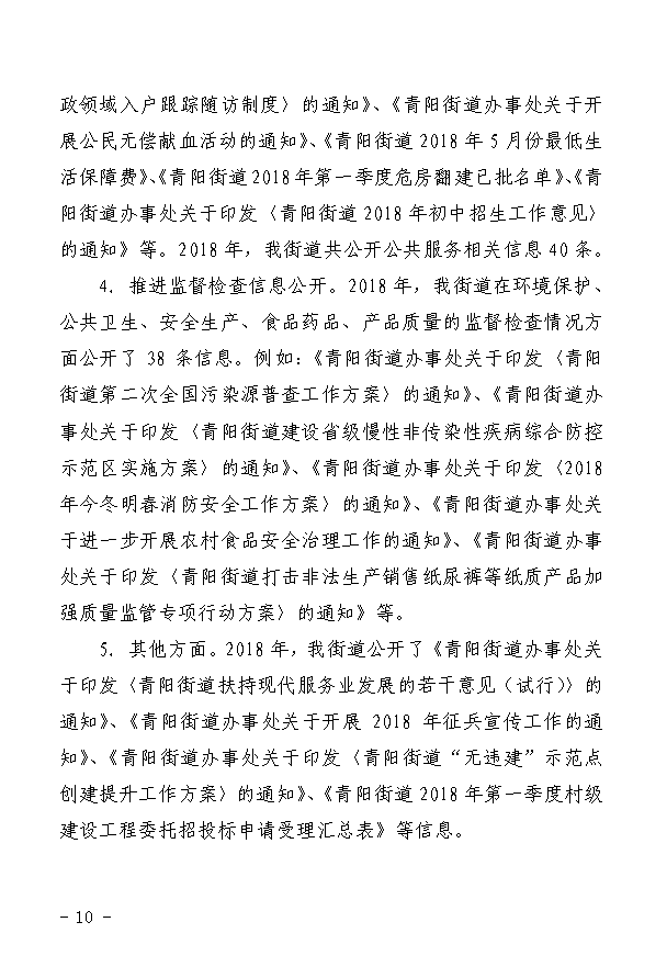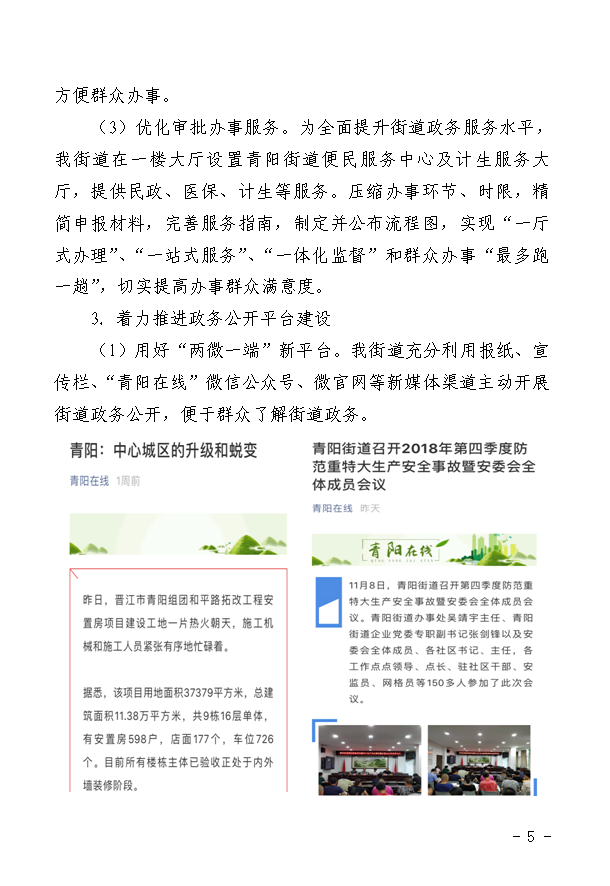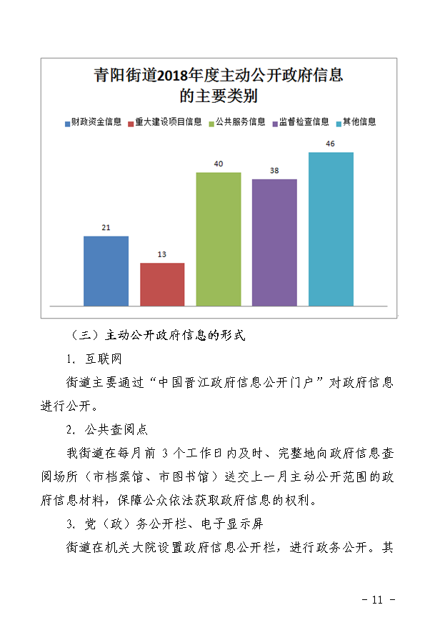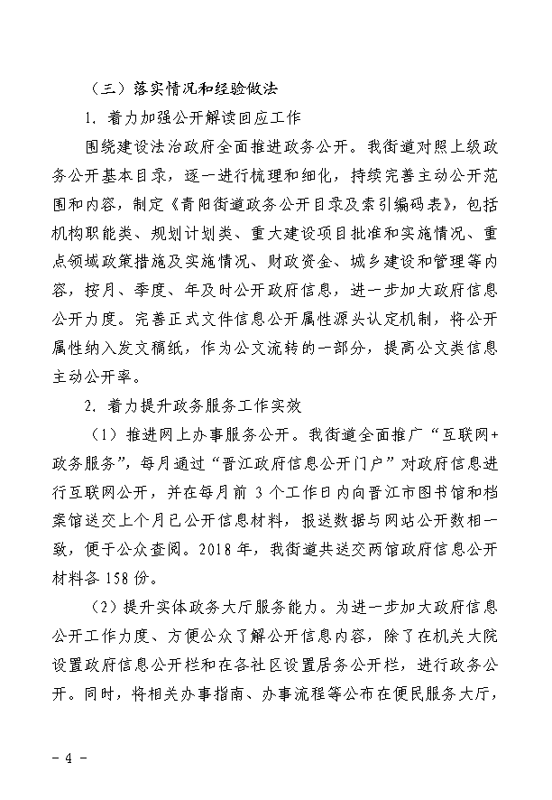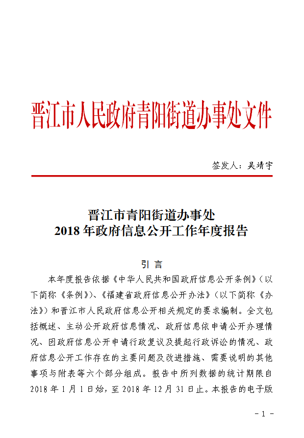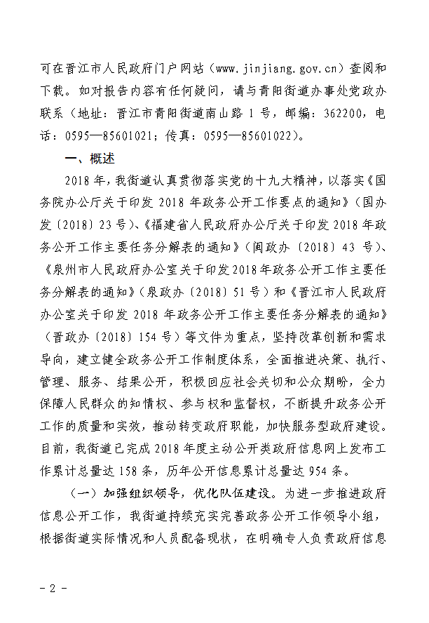 晋江市青阳街道办事处2018年政府信息公开工作年度报告