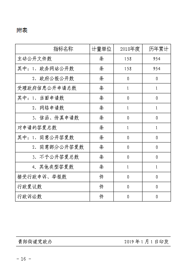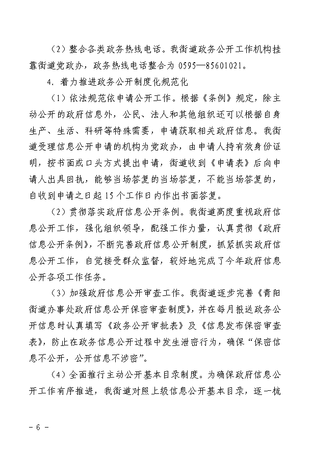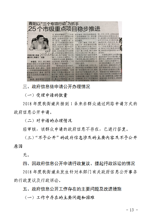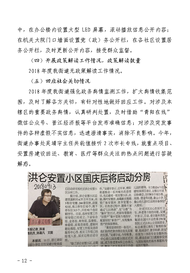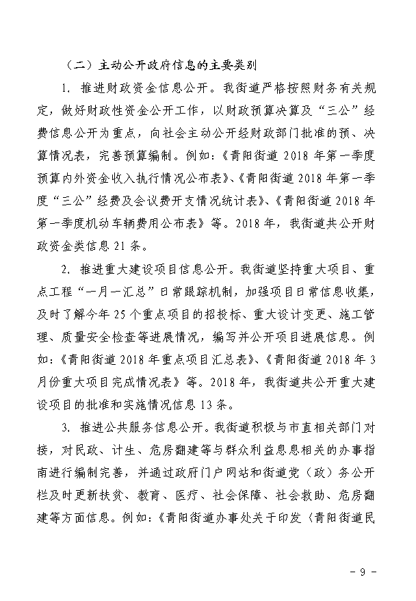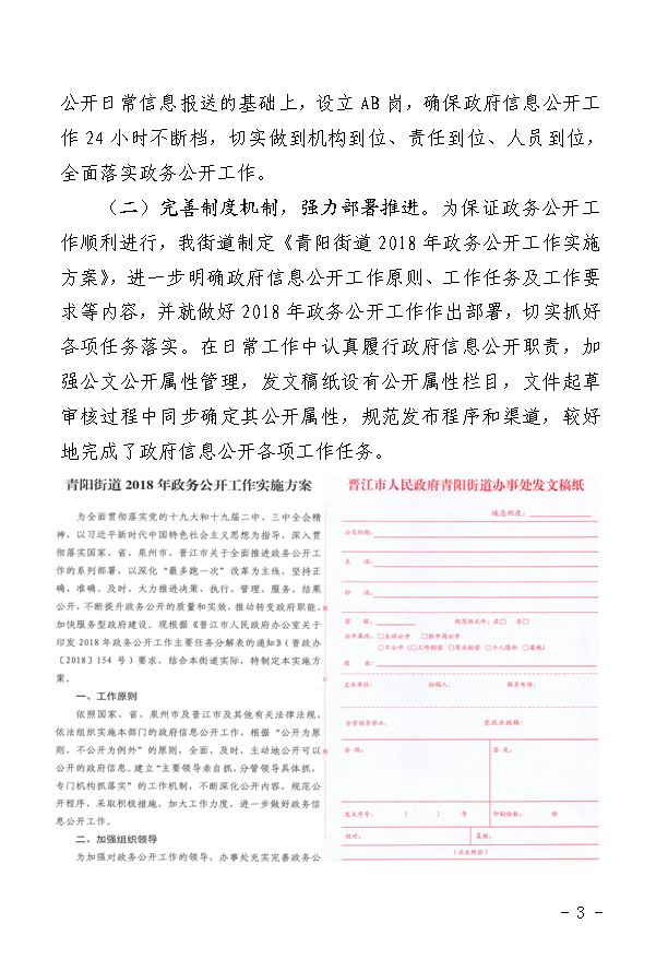 晋江市青阳街道办事处2018年政府信息公开工作年度报告