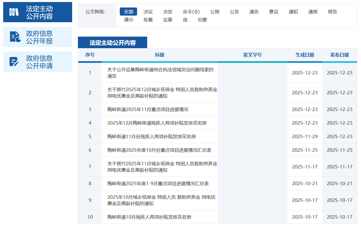 2025年,梅岭街道紧扣基层治理、民生服务、重点项目推进、文明城市创建等中心工作,坚持“以公开为常态、不公开为例外”,聚焦群众关切优化公开流程、拓宽公开渠道、提升公开质效,依法保障群众知情权、参与权、表达权、监督权,政务公开规范化、制度化水平持续提升。