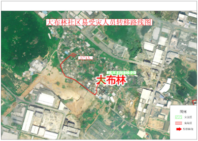 社区居民接到转移信号后,必须迅速按预定路线转移。各角落在汛前拟定好转移路线,汛期抢险救灾组必须指派组员经常检查线路上是否出现异常,如有异常,则及时修补或改变路线,以免在转移路上出现险情。转移路线避开跨河、跨溪或易滑坡地带(详见附图2)。