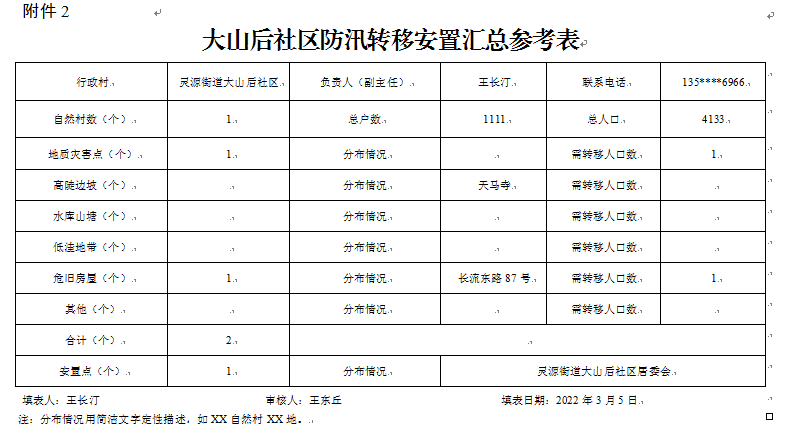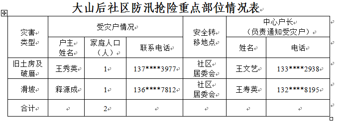 2.大山后社区防汛转移安置汇总参考表