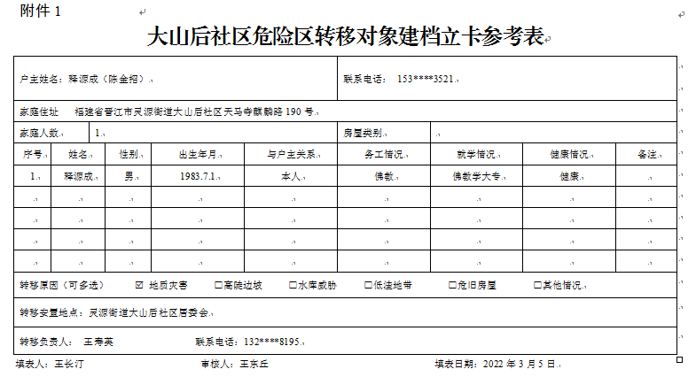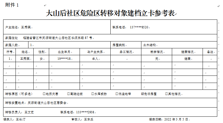附件:1.大山后社区危险区转移对象建档立卡参考表
