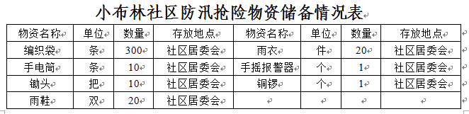 居委会储备了防汛抢险物资(详见下表)。