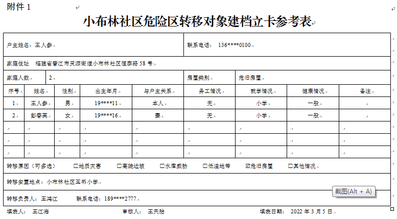 附件:1.小布林社区危险区转移对象建档立卡参考表