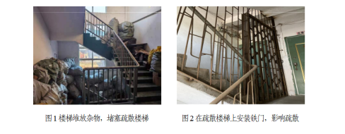 (二)建筑的疏散通道、安全出口、楼梯间不得占用、堵塞和封闭,严禁停放电动自行车。(如图1、图2所示)
