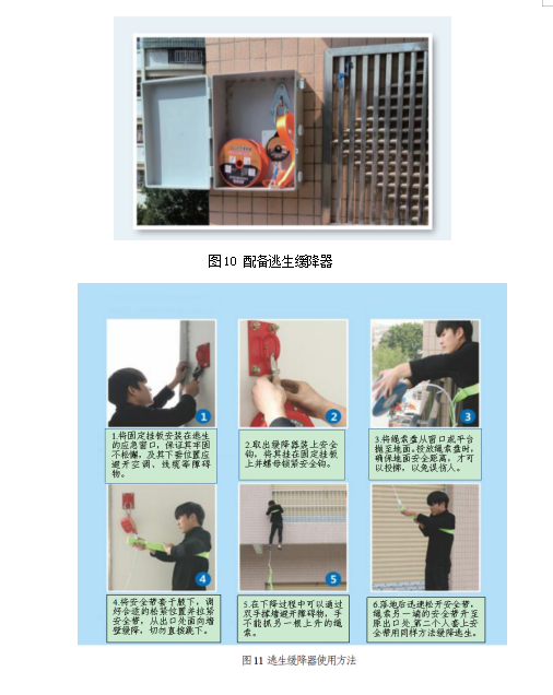 3.配备逃生软梯和缓降器应设置牢固的固定点并有显著标识,便于快速识别使用。
