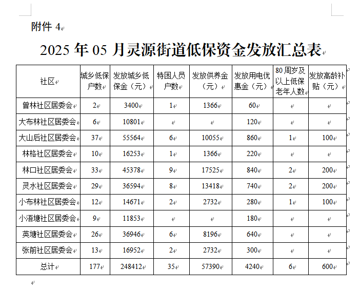 附件:1.2025年05月灵源街道城乡低保金、用电优惠金发