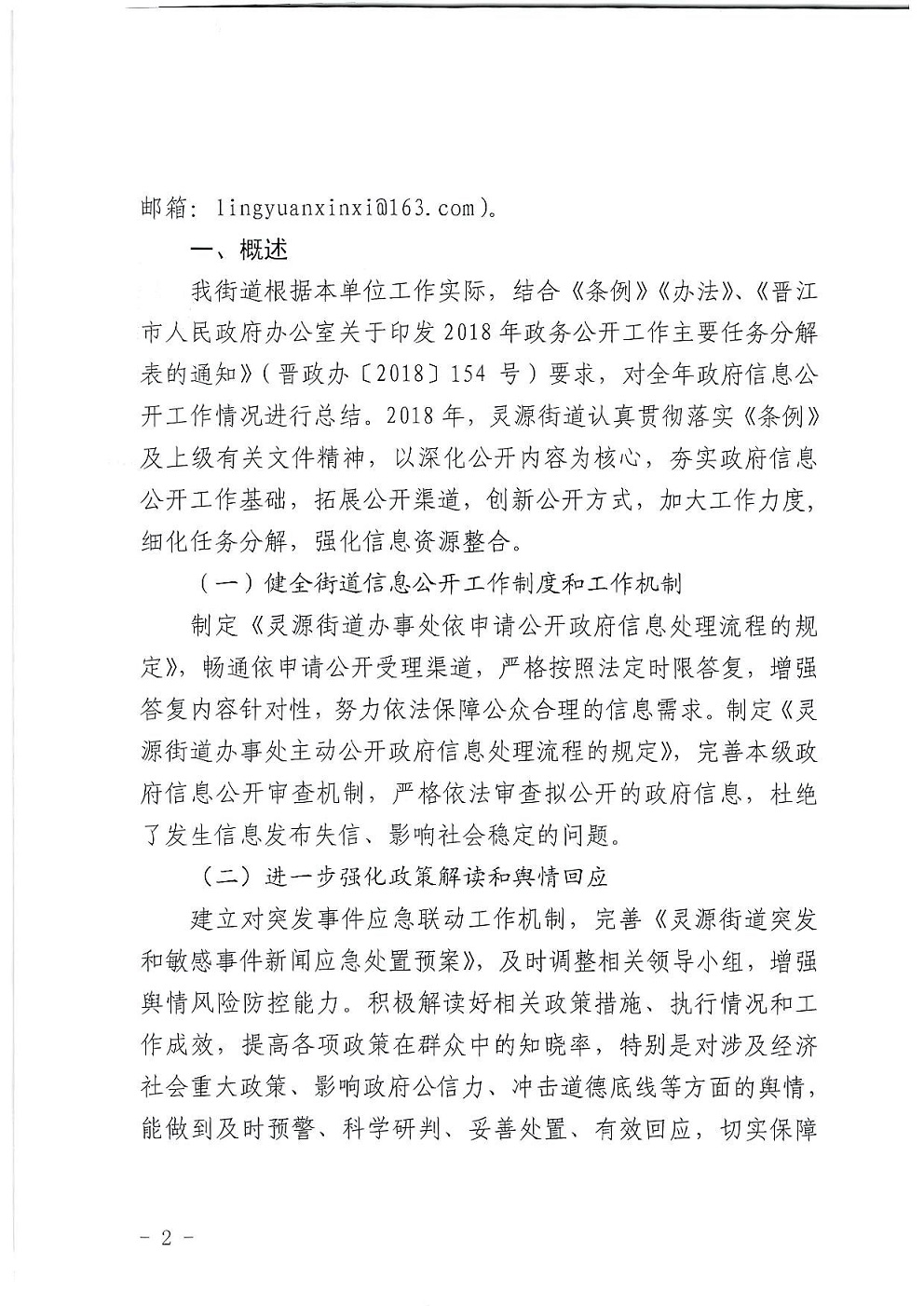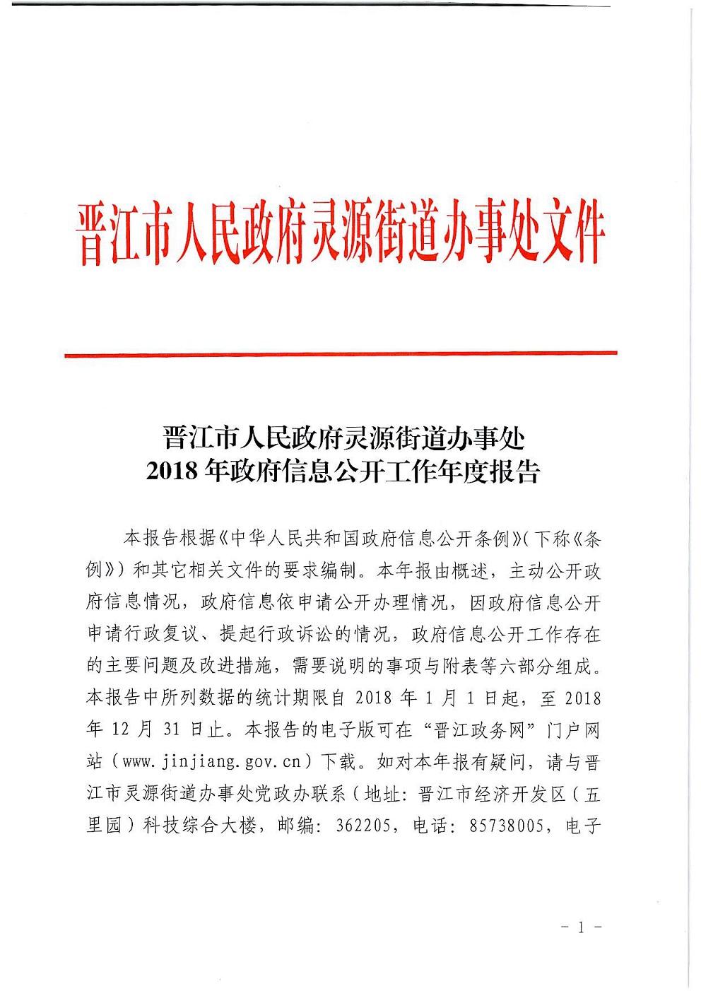 晋江市人民政府灵源街道办事处2018年政府信息公开工作年度报告