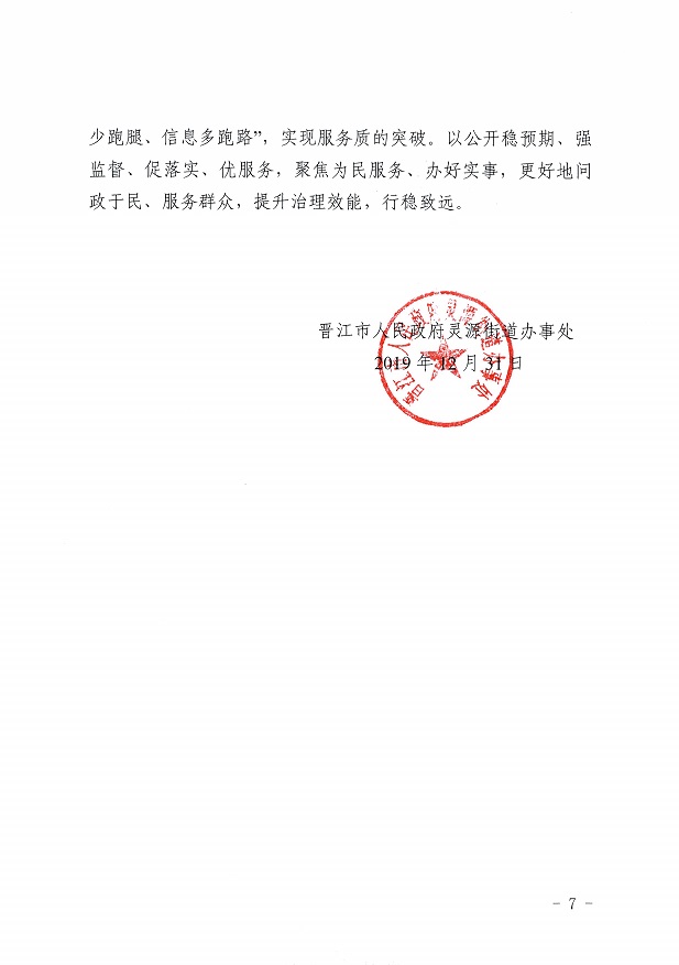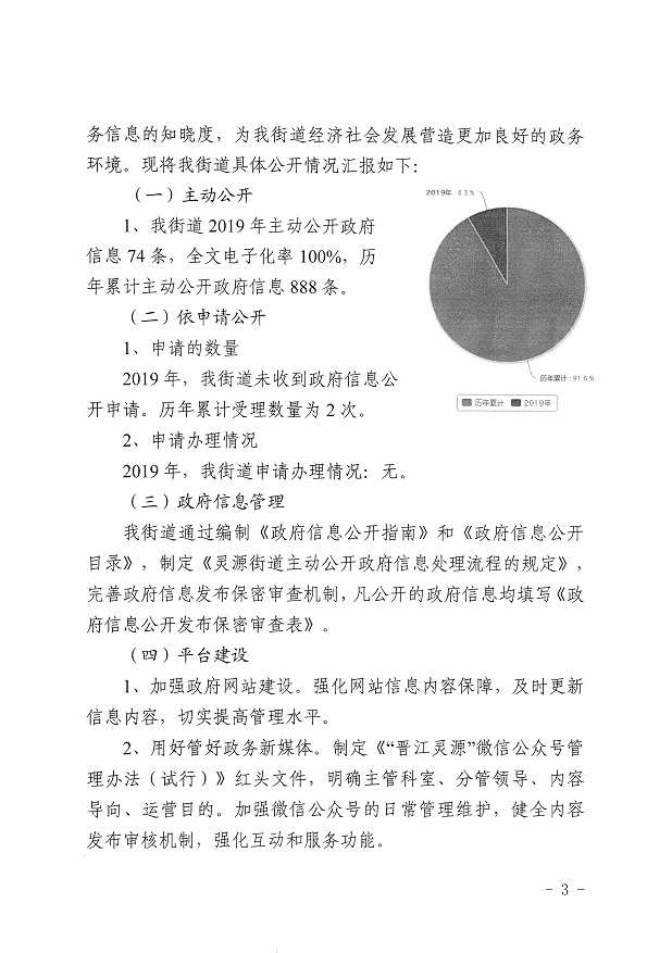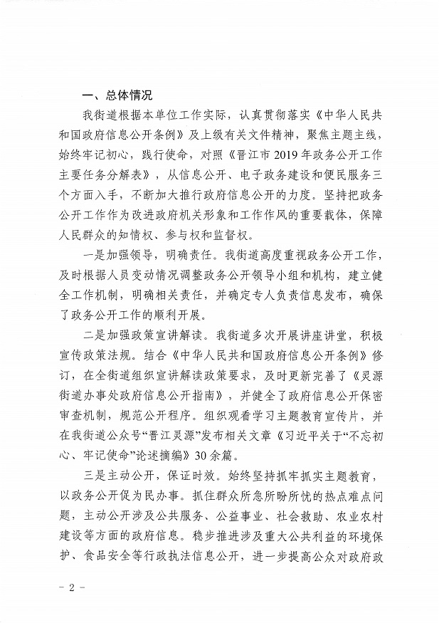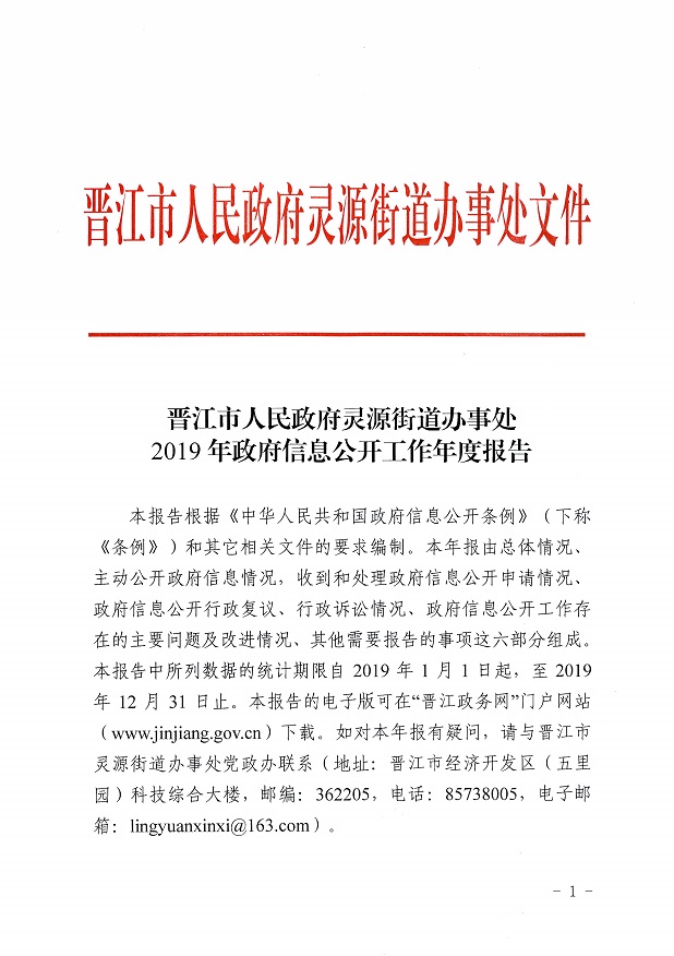 晋江市人民政府灵源街道办事处2019年政府信息公开工作年度报告
