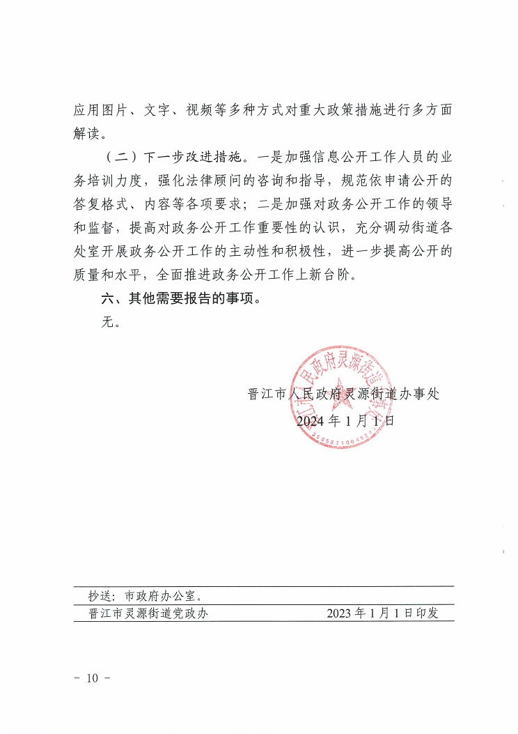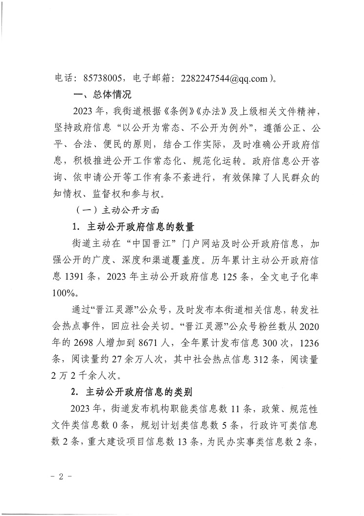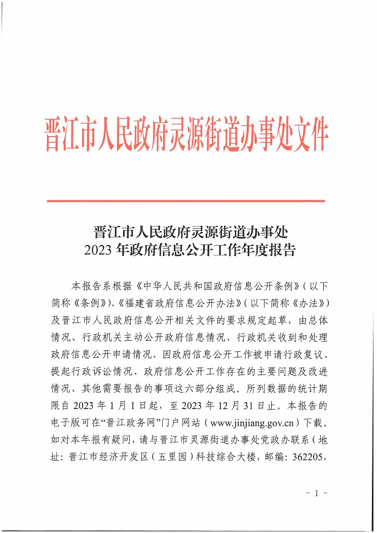 晋江市人民政府灵源街道办事处2023年政府信息公开工作年度报告
