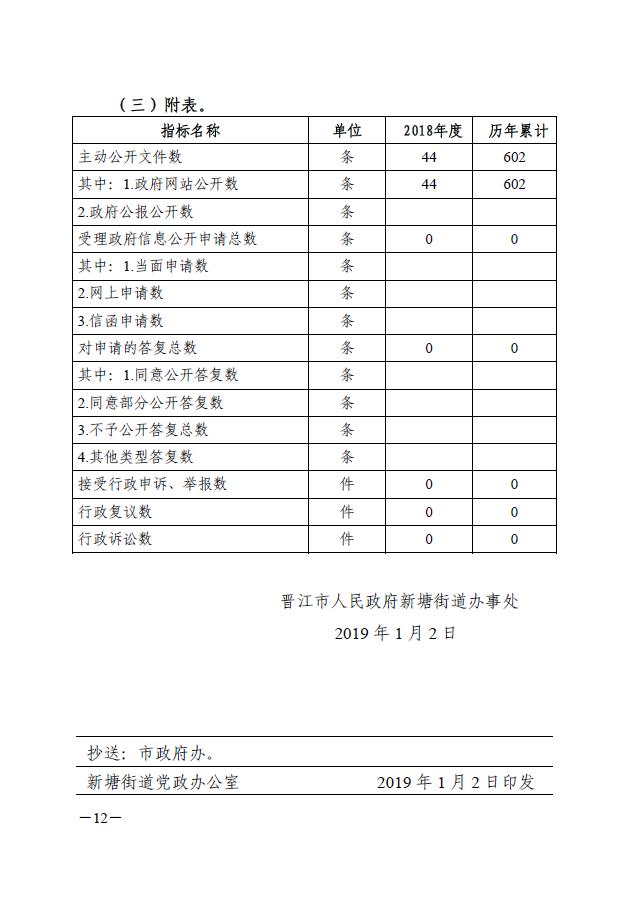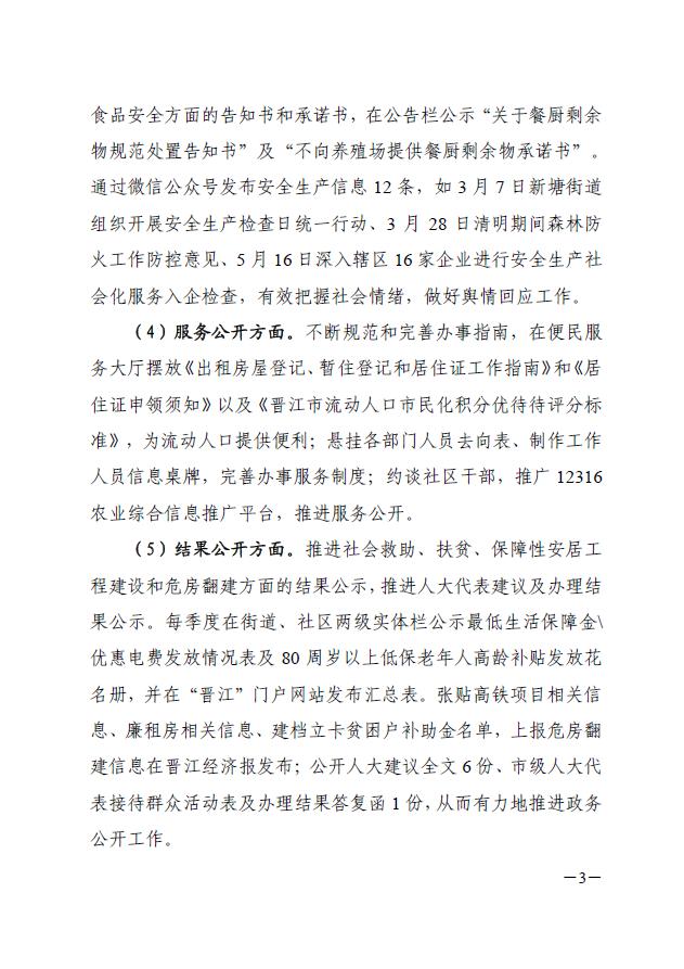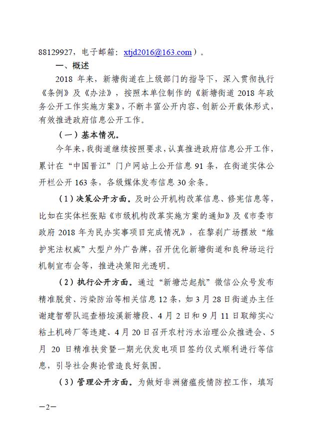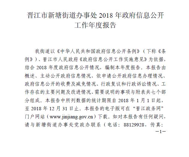 晋江市新塘街道办事处2018年政府信息公开工作年度报告