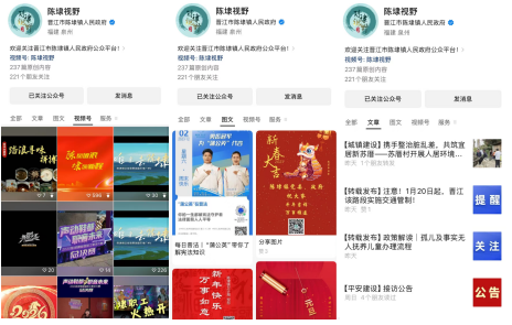 二是政务新媒体。进一步完善“陈埭视野”政务新媒体运营管理工作,及时发布镇村两级工作动态,转发社会热点事件,回应社会公众关切,关注人数和阅读量明显提升。目前,“陈埭视野”公众号关注人数已达25289人,2025年累计推送信息1115条。