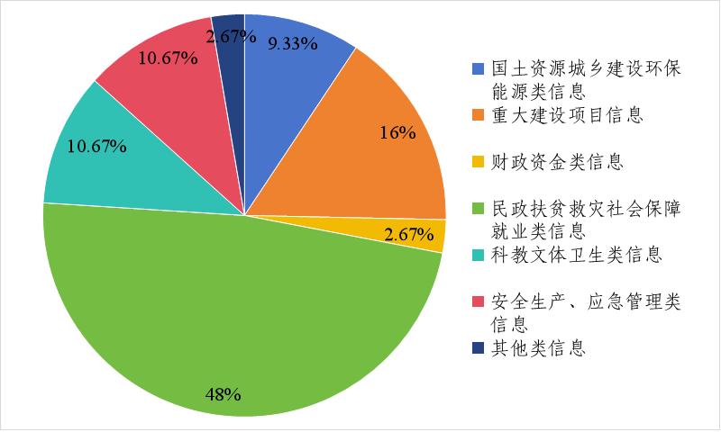 我镇坚持“以公开为常态,不公开为例外”,深化公开内容,加大主动公开力度。贯彻落实《中华人民共和国政府信息公开条例》有关工作要求,遵循依法准确、及时、有效、便民的原则,完善公文制发程序,在公文制发过程中,明确公开属性。严格落实重大决策公开制度,按照规定时限,及时公开政务信息。2024年我镇主动公开信息75条,全文电子化率达100%。公开的内容主要包括:国土资源城乡建设环保能源类信息7条,占9.33%;重大建设项目信息12条,占16%;财政资金类信息2条,占2.67%;民政扶贫救灾社会保障就业类信息36条,占48%;科教文体卫生类信息8条,占10.67%;安全生产、应急管理类信息8条,占10.67%;其他类信息2条,占2.67%。规范开展政策解读,2024年我镇公开重大决策内容两件,均附解读说明,并同步会签。