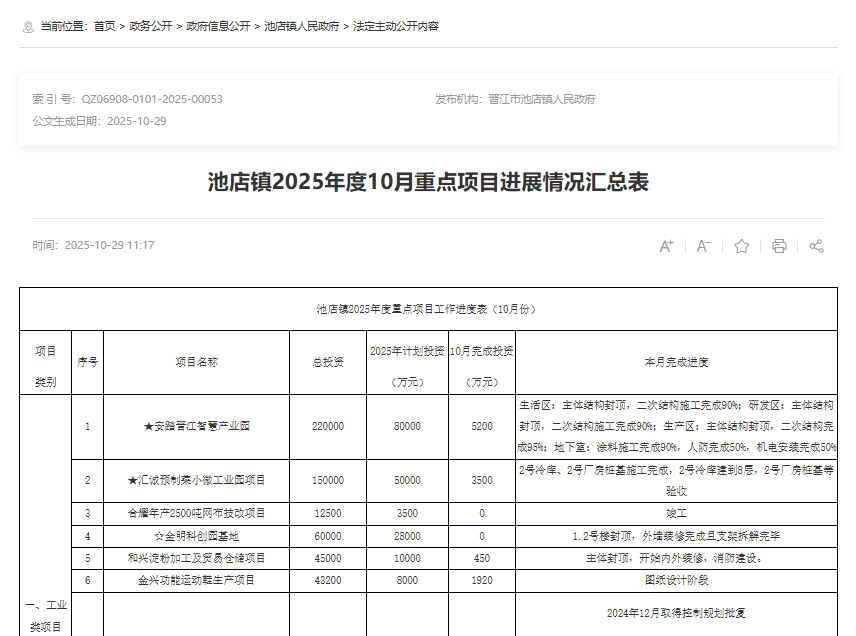 1.扩大有效投资和优化营商环境政策举措信息公开。注重加强涉及市场主体的信息公开,依法依规做好扩大有效投资相关规划、政策文件和重大建设项目信息公开,积极引导市场预期。每个月在晋江市人民政府网“重点领域信息公开”专栏和镇政府大楼宣传栏公开重大建设项目信息,公开内容包括:项目名称、总投资、2025年计划投资、每月完成投资、工程形象进度等内容。做好产业行业扶持政策、引导资金、项目申报、成果奖励等内容公开,推动惠企政策直达快享。