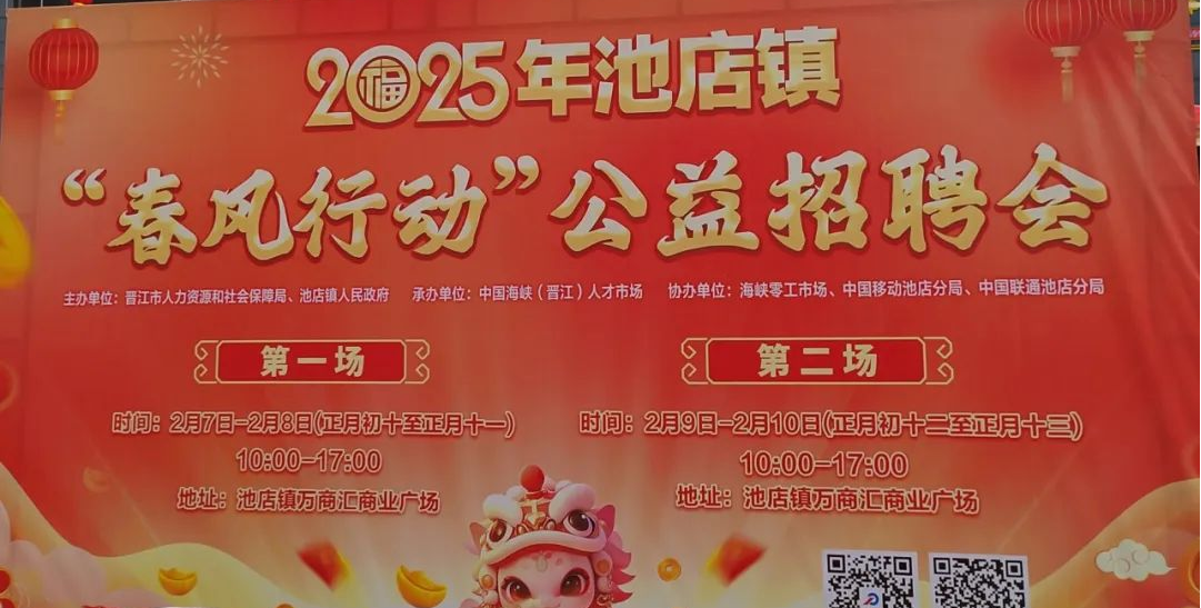 2.稳就业、保就业政策宣讲及培训信息公开。针对高校毕业生、失业人员、农民工、退役军人等群体,切实做好就业帮扶、技能培训等政策及服务信息发布。2025年2月7日-2月10日,举办池店镇2025年“春风行动”公益招聘会,并开展就业、创业相关政策宣传。2月7日-8日第一场招聘会吸引了安踏体育用品集团有限公司、泉州寰球鞋服有限公司、福建冠达星控股集团有限公司、名志集团等102家企业,提供了5420个优质就业岗位,涵盖普通职员、管理人员、财务、行政等多种职位类别,满足了不同求职者的需求,初步达成就业意向274人。2月9日-10日,第二场招聘会吸引了来自鞋服、食品、物流、文化传媒等多个行业100家企业到场参会,提供岗位数4797个,现场共收到简历331份,初步达成就业意向的岗位有263个。