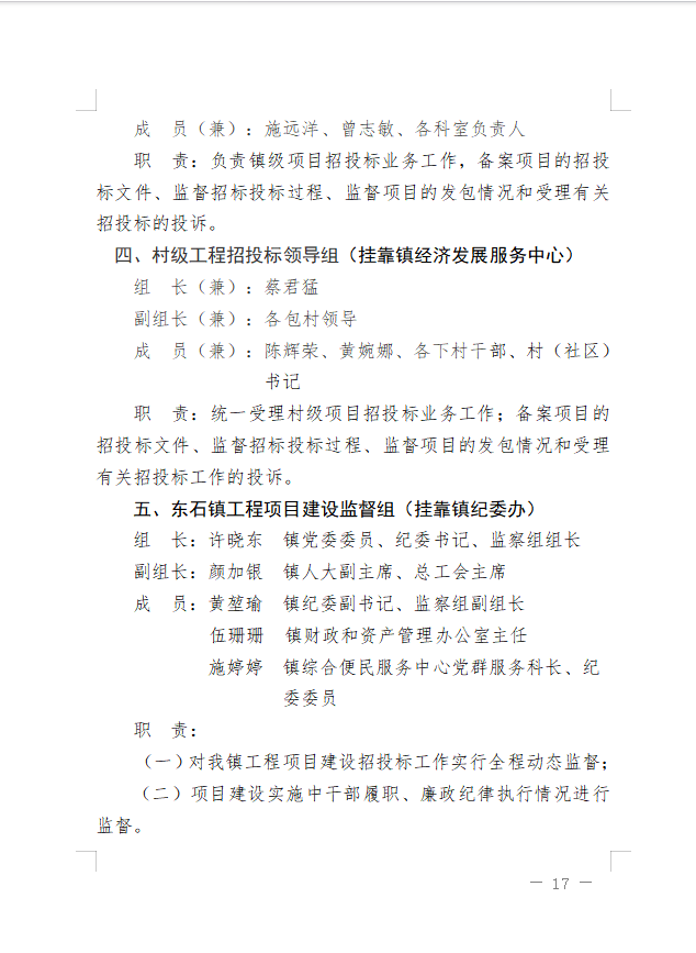 (五)东石镇工程项目建设监督组(挂靠在镇纪检监察组)