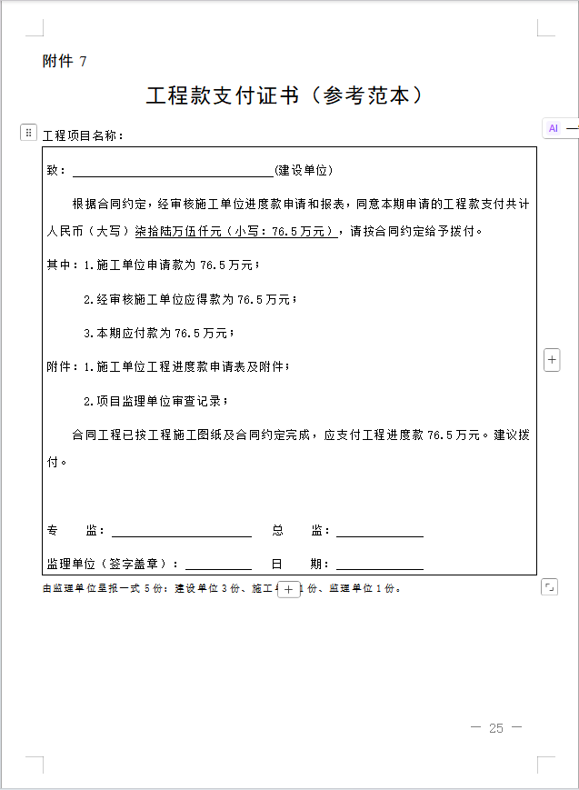 (二)施工单位提交工程量清单、进度款申请表(附件6)、支付凭证(附件7)、开具税票等资料,经监理单位核定,项目责任部门审核。