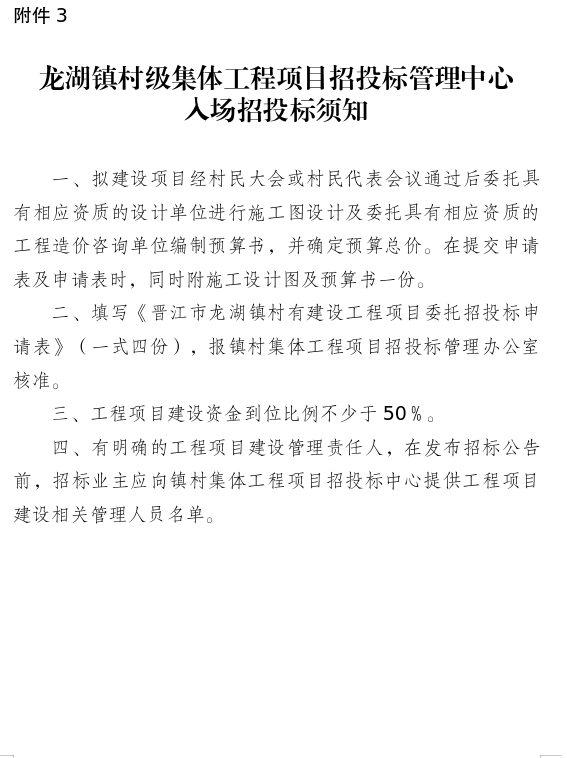3.龙湖镇村级集体工程项目招投标管理中心入场