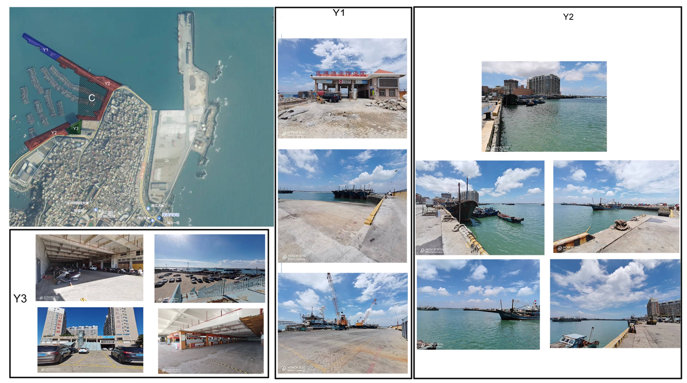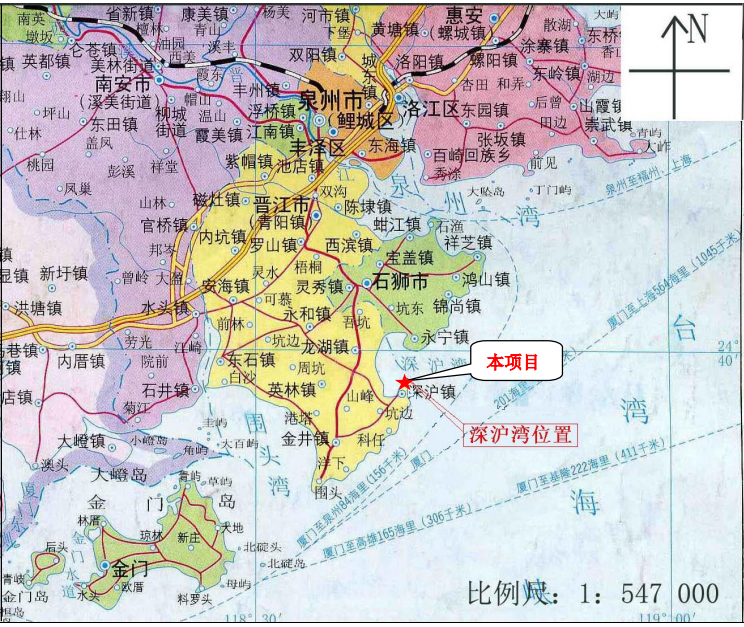 深沪中心渔港位于深沪湾的南湾口内的深沪小半岛西侧,东临台湾海峡,背靠晋江市区,地理位置优越,见图1。深沪中心渔港为农业部全国首批三大中心渔港之一,国家级渔港经济区,也是泉州市体量规模最大的中心渔港,避风掩护水域达50公顷,避风等级达12级,可锚泊容纳1000艘50吨以上渔船,远洋渔业基础十分发达,历来都是渔船靠泊、装卸、补给的理想港口(开发现状见图2)。