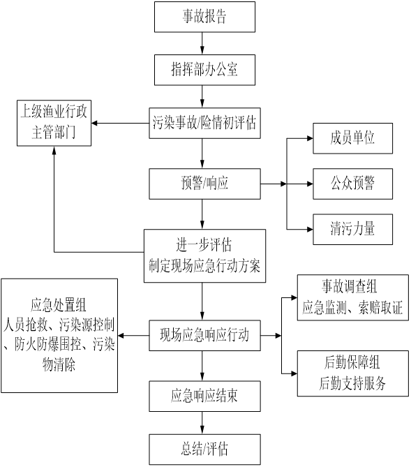 (3)应急响应:旨在防止、控制、清除、监视、监测等防治渔港船舶活动水污染所采取的任何应急行动。