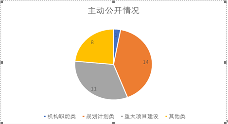 2023年,开发区严格落实上级关于政府信息公开的各项要求,共向“中国·晋江”政府信息公开专栏报送主动公开政府信息34条,发布34条,并通过“中国·晋江”、晋江公开网、晋江经济开发区网站、市图书馆、档案馆等渠道主动公开信息34条,其中,机构职能类信息1条,占比2.98%;规划计划类信息想14条,占比41.17%;重大建设项目信息11条,占比32.35%;其他类信息8条,占比23.53%。