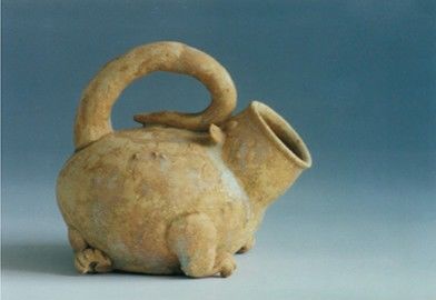 虎子古时溺器。呈卧虎状,大圆筒口,扁圆鼓腹,平底,卷尾状提把,四足屈曲前臣卧。头部贴塑耳鼻眼,腹部刻画象征性的毛状纹饰。通体施青灰釉,釉部分脱落。通高10.5厘米、口部长2.8厘米、径4厘米、腹径9.5厘米、底径6.1厘米。96霞福唐墓出土。(来源:晋江文史散论)
