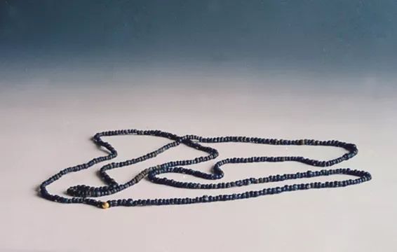 料珠扁圆状,中穿孔,呈蓝或褐色,色泽晦涩,径0.3厘米~0.4厘米不等。