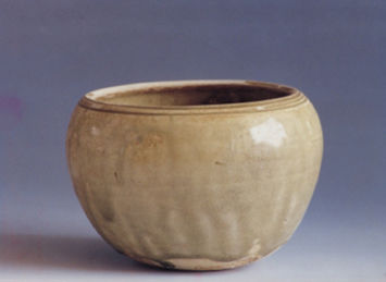 钵敛口,口沿外折,鼓腹下收及底,平底。施青釉不及底,底露胎,釉多已脱落;器身留有多道旋转纹,内底留有7个支烧点。口径21.8厘米、底径11.5厘米、高14.4厘米。
