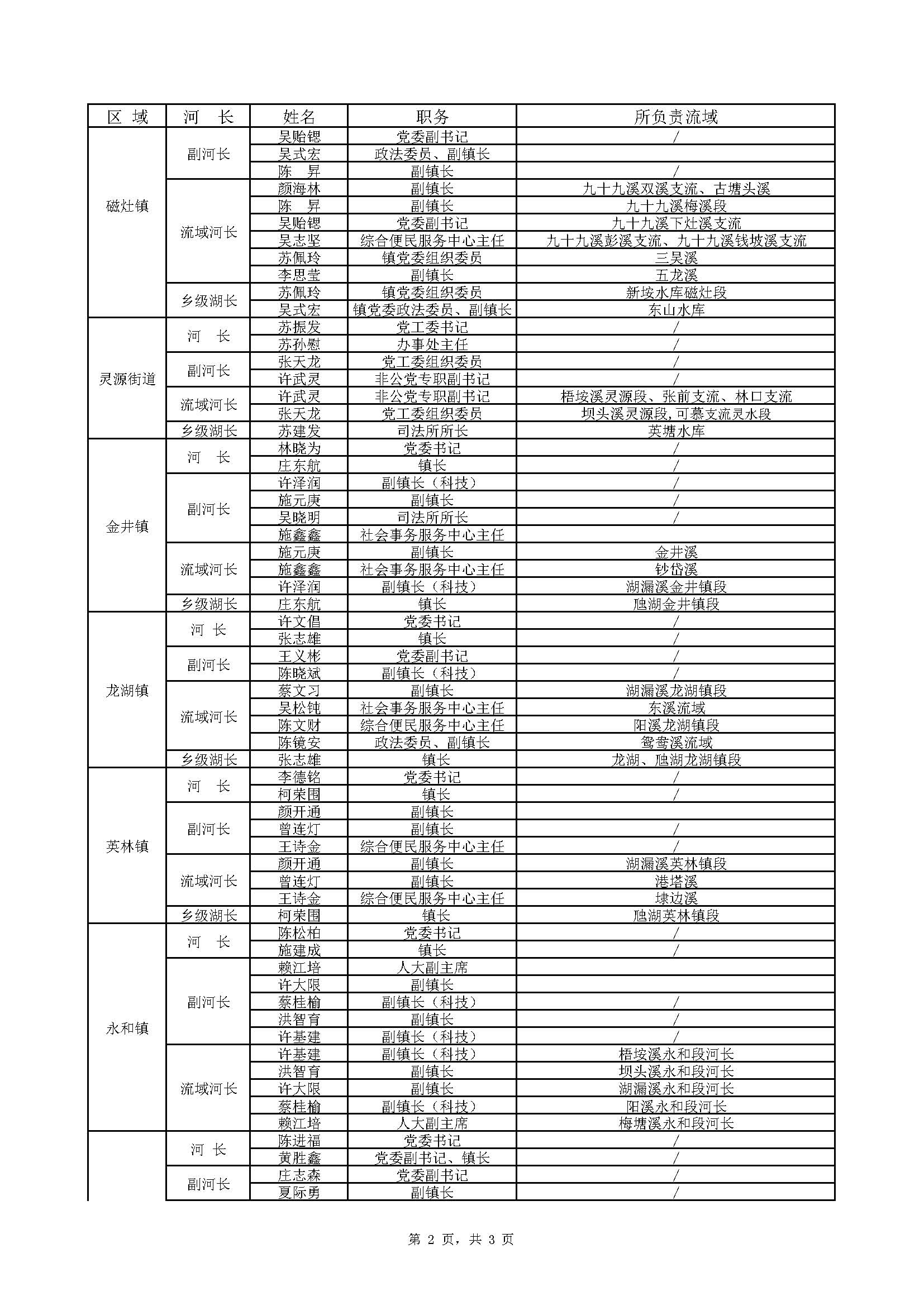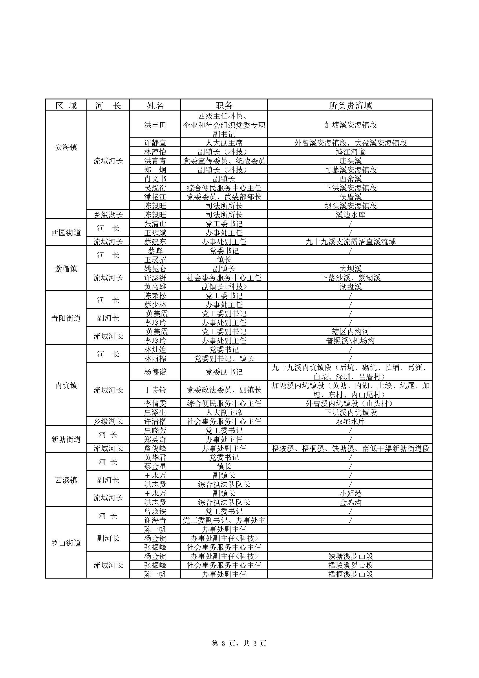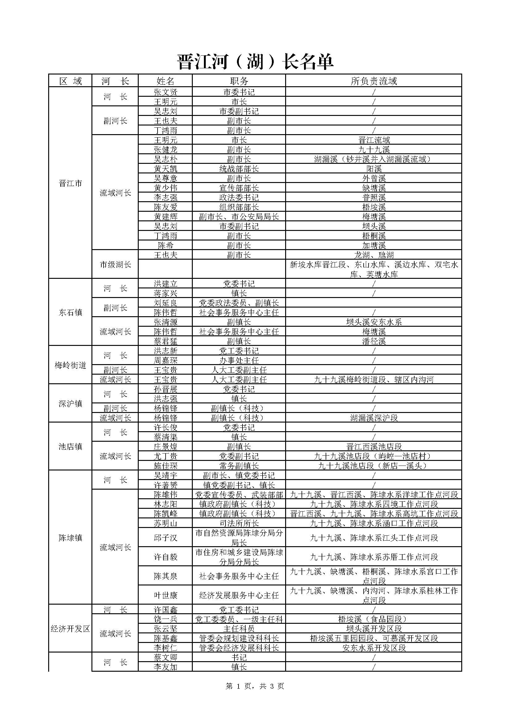 晋江河(湖)长名单(2023年9月更新)