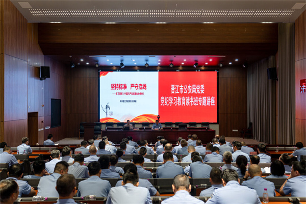 5月14日,读书班邀请晋江市委党校社科研究室主任、学术委员会副主任、经济管理高级讲师洪荣福作专题辅导讲座,全面系统阐释《中国共产党纪律处分条例》的修改背景和重要意义,重点解读了“政治纪律、组织纪律、廉洁纪律、群众纪律、工作纪律、生活纪律”等“六项纪律”主要违纪行为,并对新形势下基层党员如何坚守党纪底线提出了建设性意见。辅导讲座主题鲜明、站位高远,逻辑清晰、内涵丰富,既有政治高度、又有理论深度,对推进晋江市公安机关党纪学习教育深入开展起到了有力的指导推动作用。