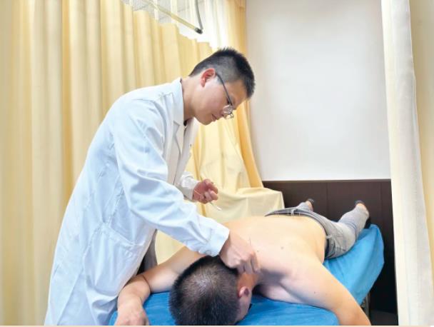 ▲中医阁里,中医师许火燃为患者做针灸治疗