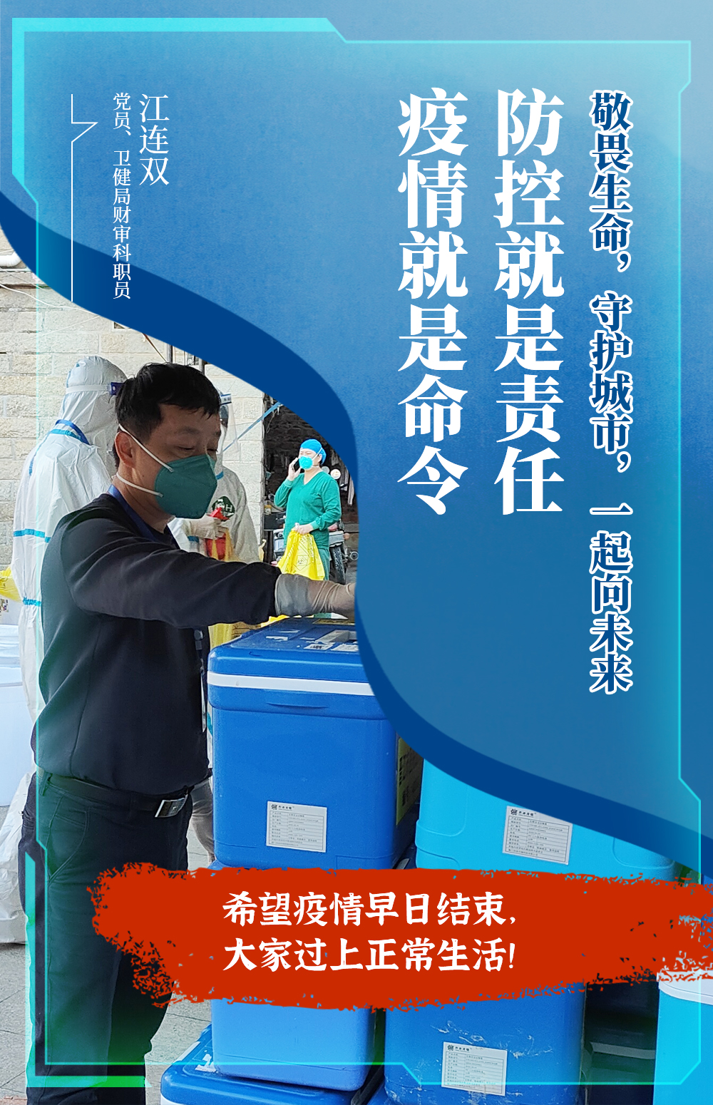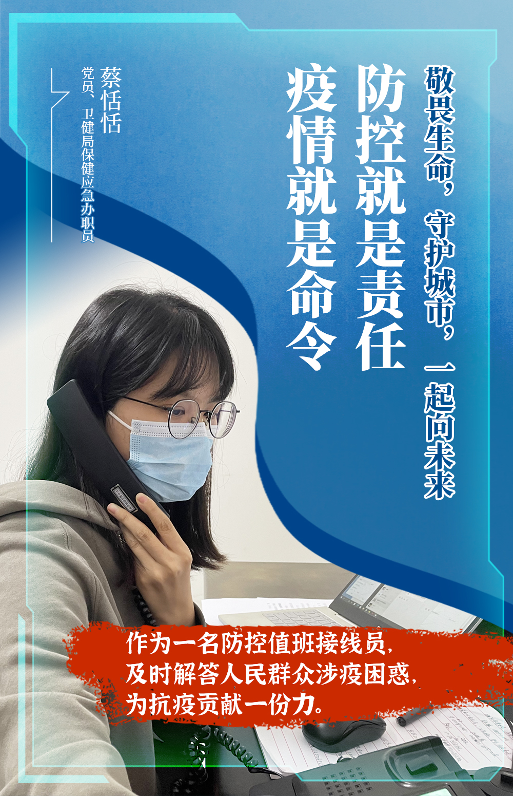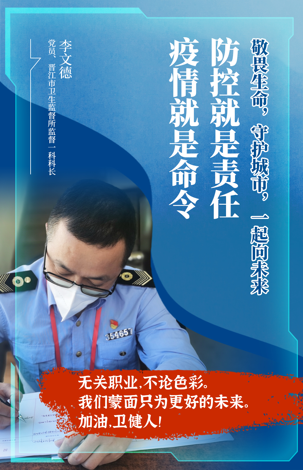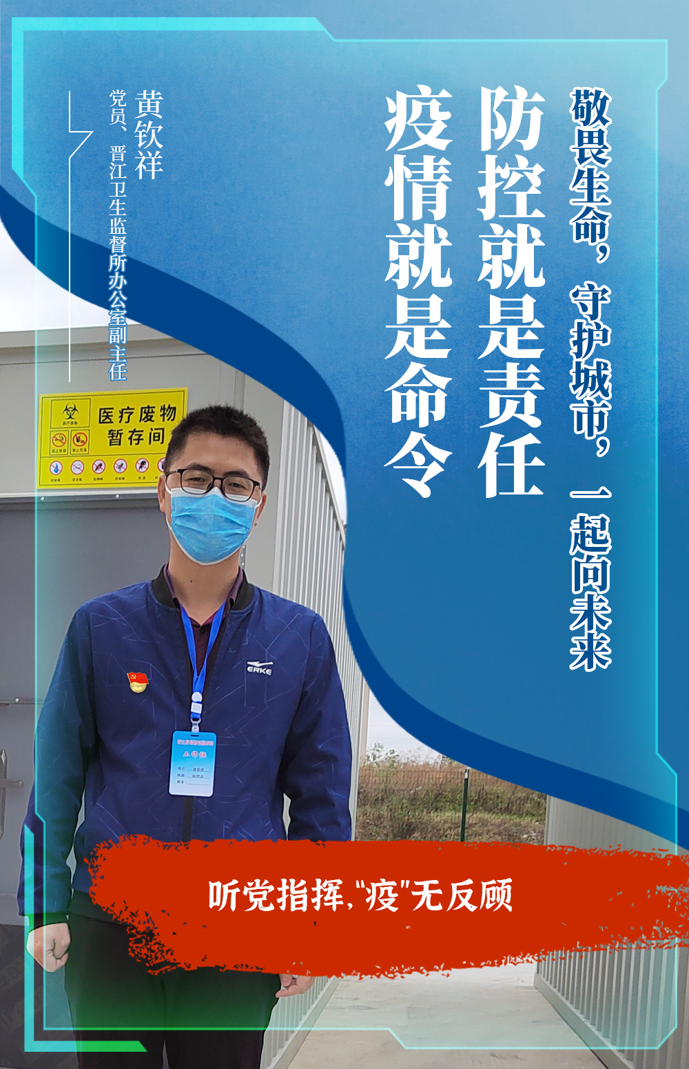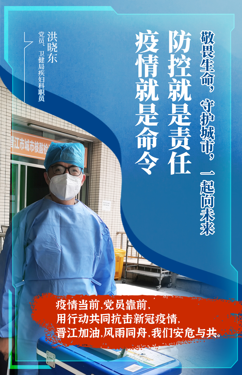 2022年11月,临近年底,又一轮疫情的警铃响起!国内多地散发疫情,防控形势异常严峻。晋江市卫健局高度重视,认真落实省市疫情防控工作会议精神,坚持党建引领,局党组成员和党员干部带头驻扎在疫情防控一线,以“领导带头、党员示范、干部响应”的政治站位,以“勇于担当、敢打硬仗”的工作作风,舍小家为大家,时刻战斗在疫情防控一线,每一个人在不同的岗位上,兢兢业业履行了卫健人的责任与担当。