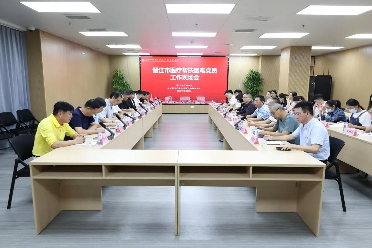 党建引领聚合力,医疗帮扶暖人心。近日,为进一步推进医疗帮扶困难党员工作的落实,总结经验做法,晋江市卫计系统联合市党员互助协会,组织召开晋江市医疗帮扶困难党员工作现场会。晋江市党员互助协会理事长姚志强,副理事长陈文星、尤祖椿、苏永锋,晋江市卫计系统党委书记张杭、专职副书记蔡青云,市医院(上海六院福建医院)、中医院、安海医院及晋南分院、磁灶中心卫生院、新塘街道社区卫生服务中心、东石中心卫生院等相关领导参加。