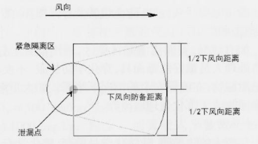 结合国内外相关标准规范,天然气、液化石油气隔离、疏散距离,见表F1,紧急隔离区与下风向防备距离示意图见图F1。